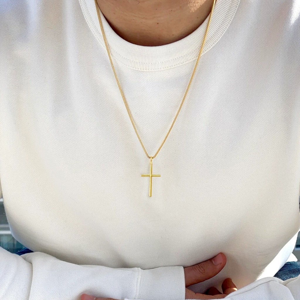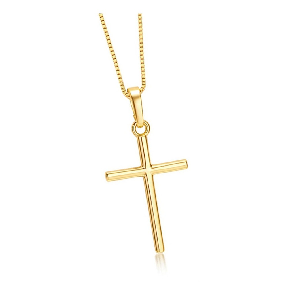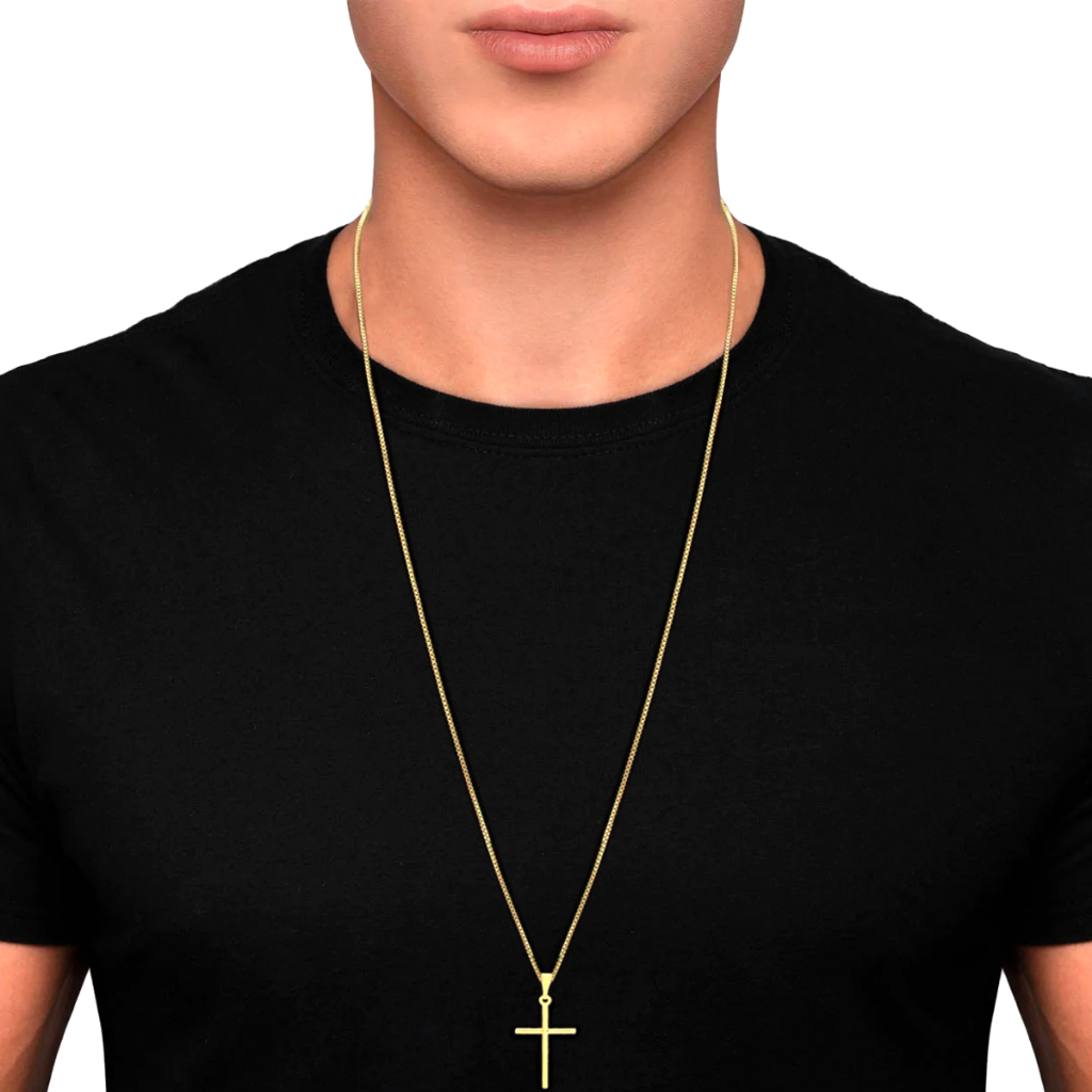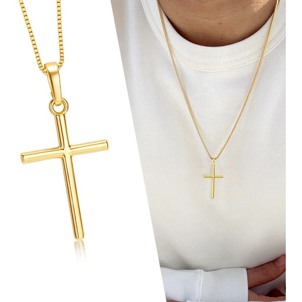 Corrente + Pingente Cruz Palito Banhados a ouro 18k Cordão Masculina Crucifixo
