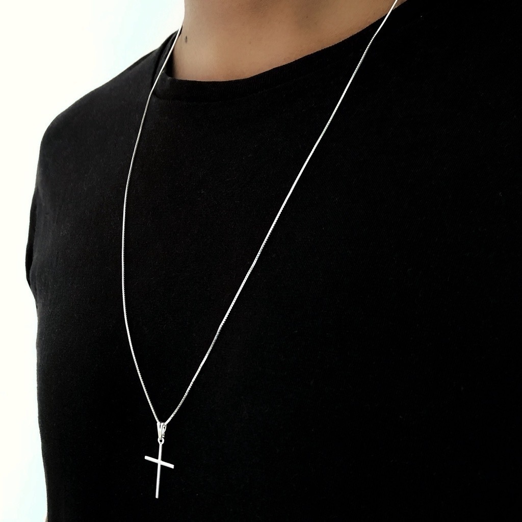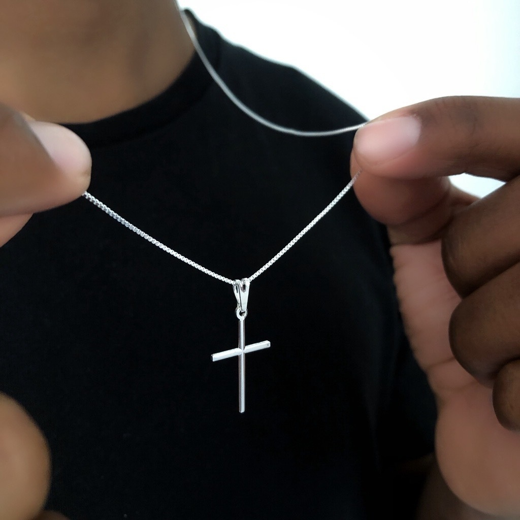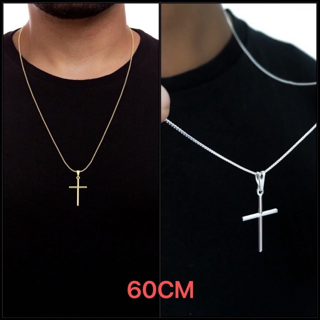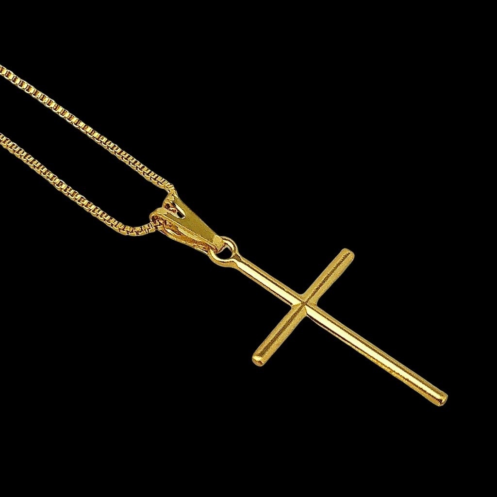 Corrente Veneziana + Pingente Cruz Palito folheados a ouro 18k Prata925 Cordão Masculino e Crucifixo