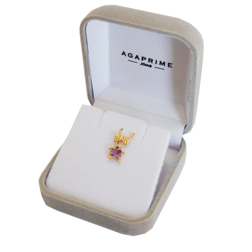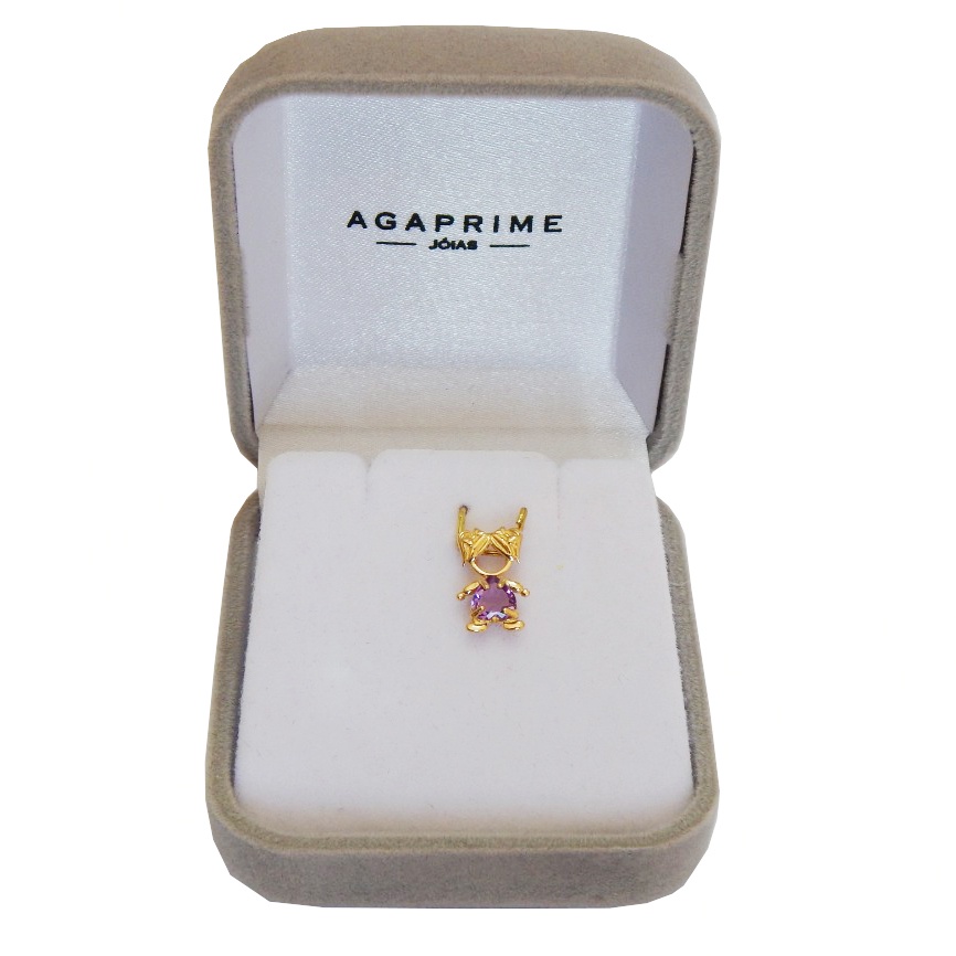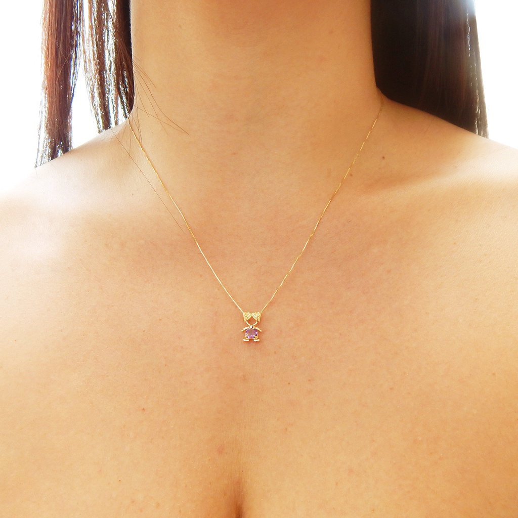 Corrente Veneziana + Pingente Menina Filha Ametista Ouro 18k