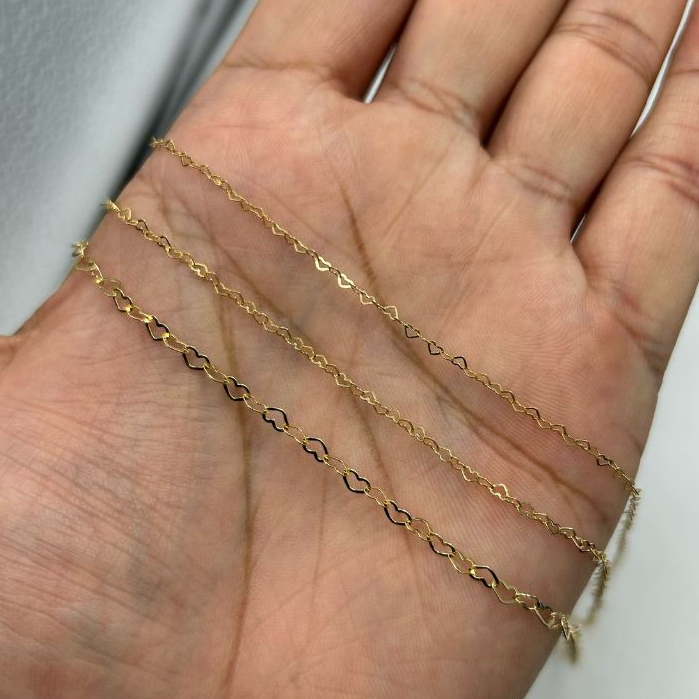 Corrente de Ouro 18k Elos coração com 3mm modelo Feminino