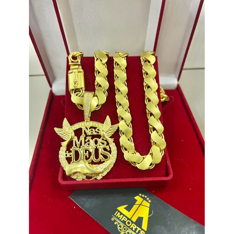 Corrente friso s 12mm mc poze + Pingente jesus é o dono do lugar de moeda antiga pura