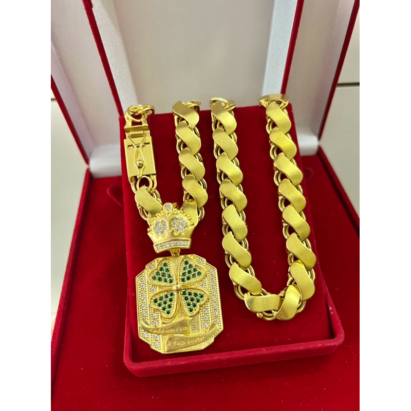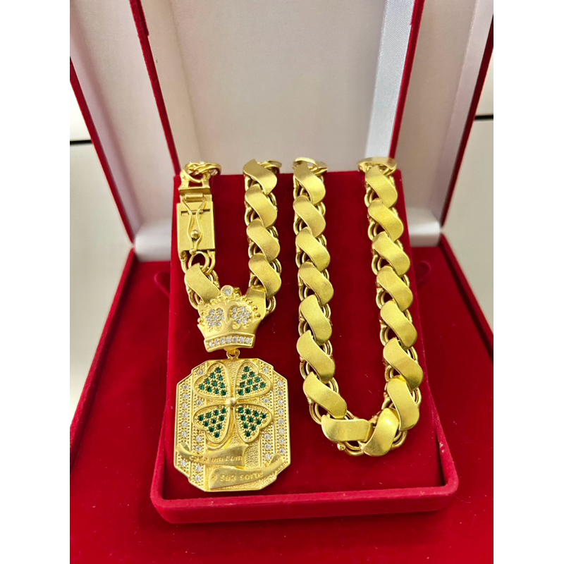 Corrente friso s mc poze 12mm 70cm+ pingente trevo quadrado e limpa moeda