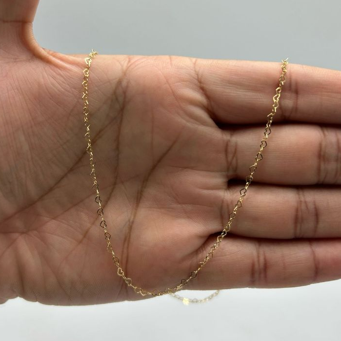 Corrente ouro 18k Love 45cm elo coração 3mm 1,85 gramas