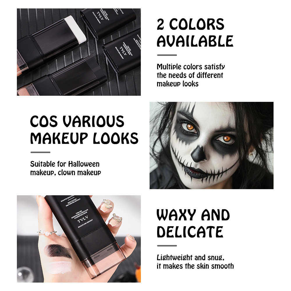 Corretivo em Bastão TVLV Inglês para Maquiagem de Halloween, Base Dupla Face Preta e Branca