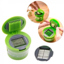Cortador Fatiador de Alho Garlic Cutter com Duas Laminas em Aco Inox Verde
