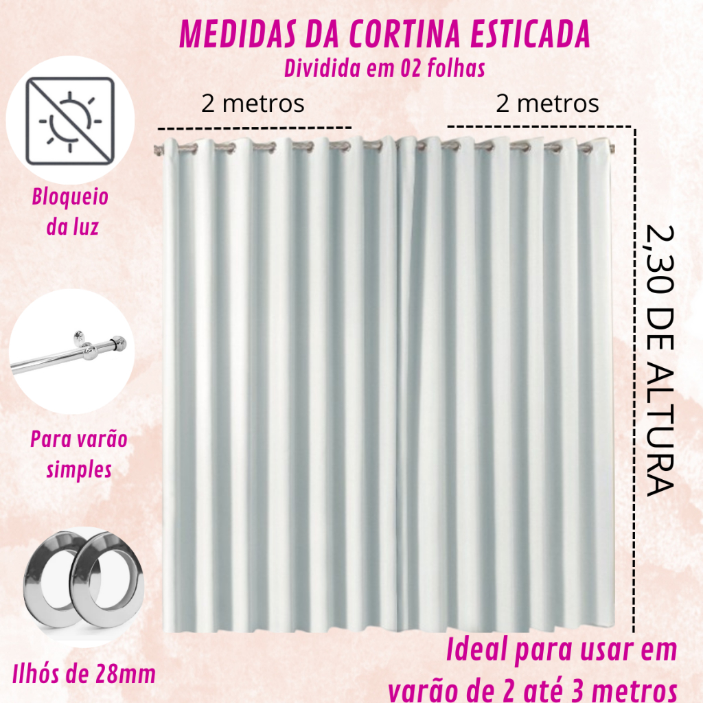 Cortina Blackout Em Tecido 4 metros X 2 30 Corta Luz Sala Quarto Decoração