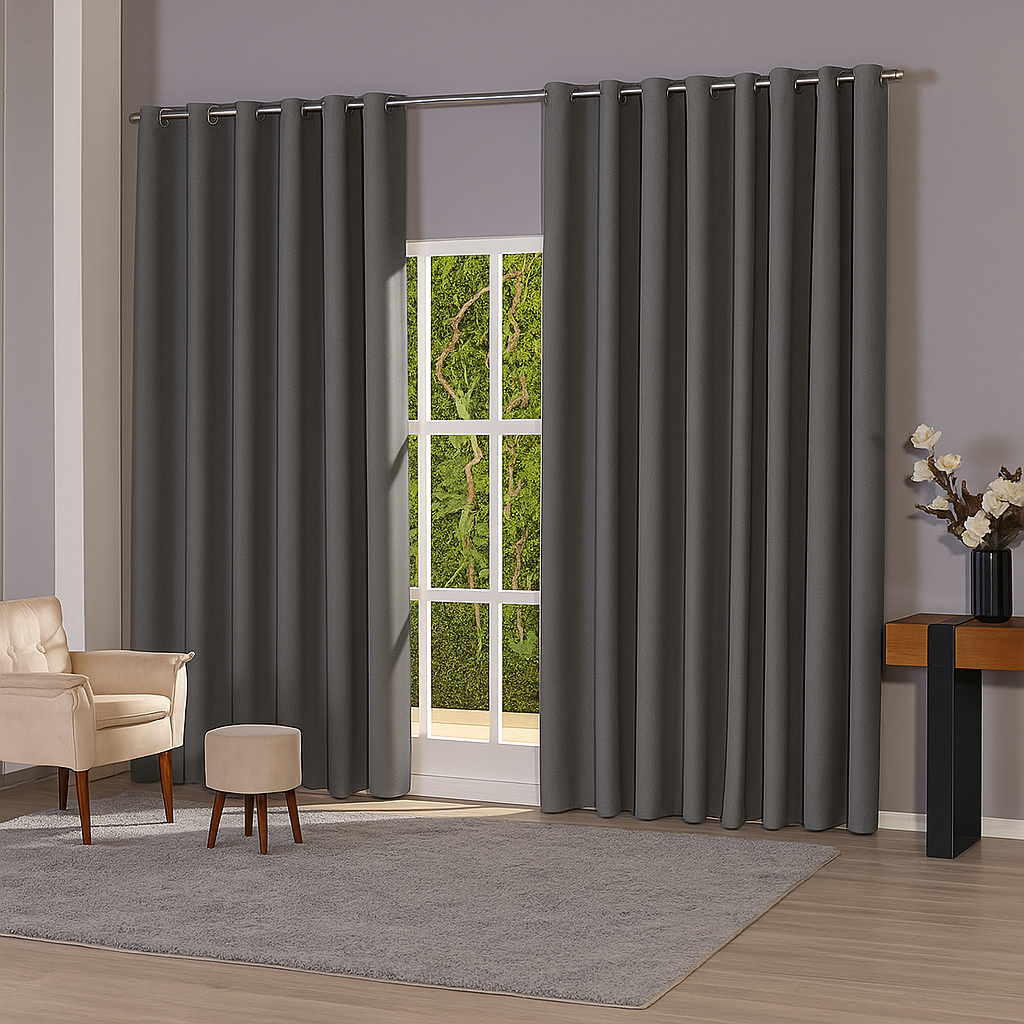 Cortina Blackout Para Apartamento Quarto Sala 2,50x1,80m Bloqueio Total da Luz Ilhós Cromado