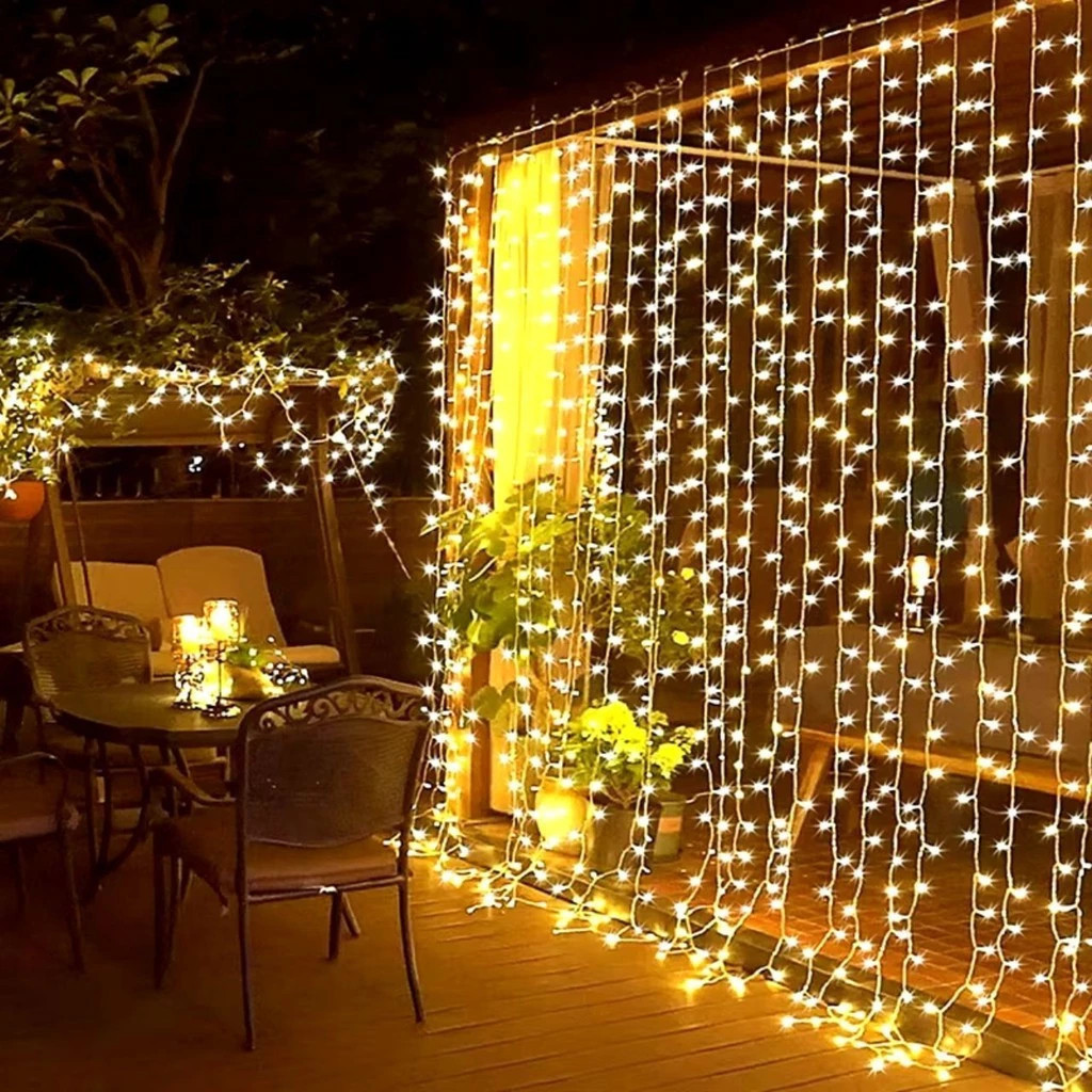 Cortina Cascata De Luzes 3M x 2.5M 500 LED Coloridas Fio Branco 10 Modos Bivolt 127V Ou 220V