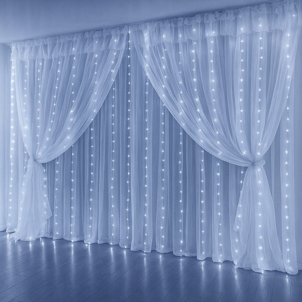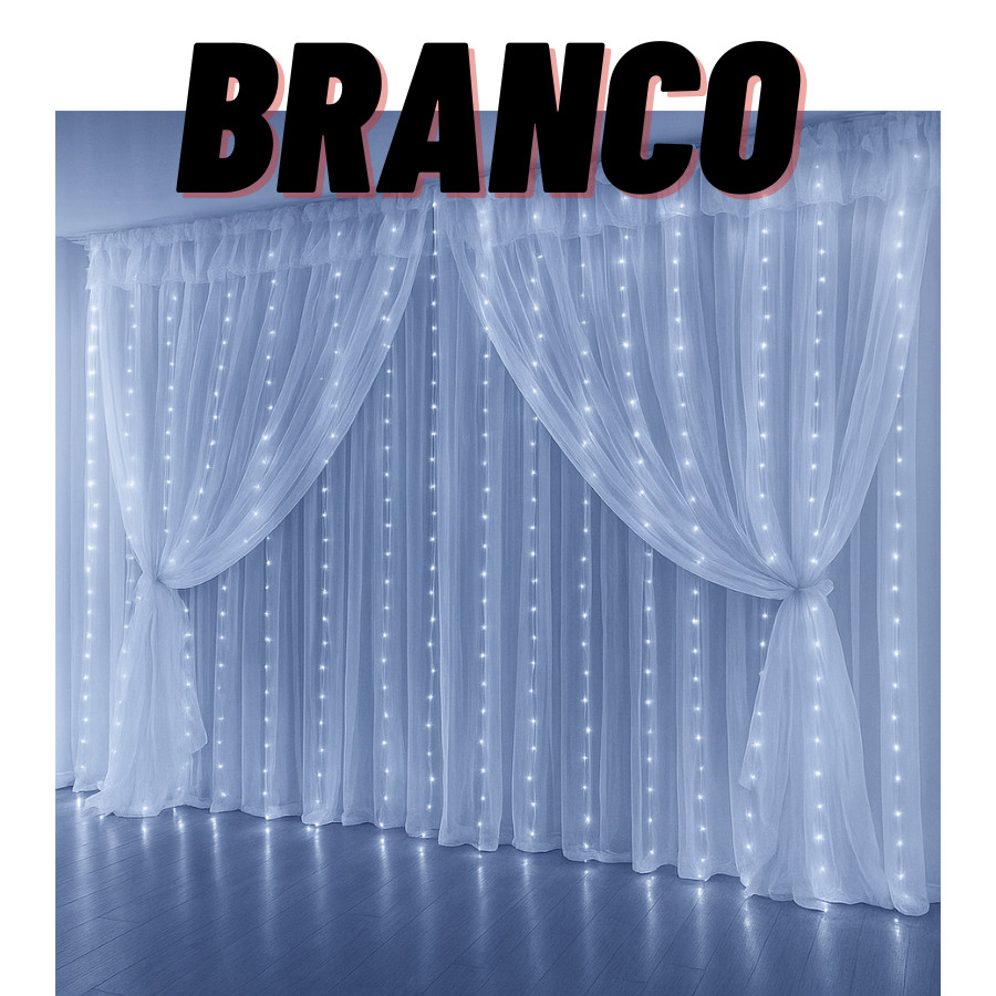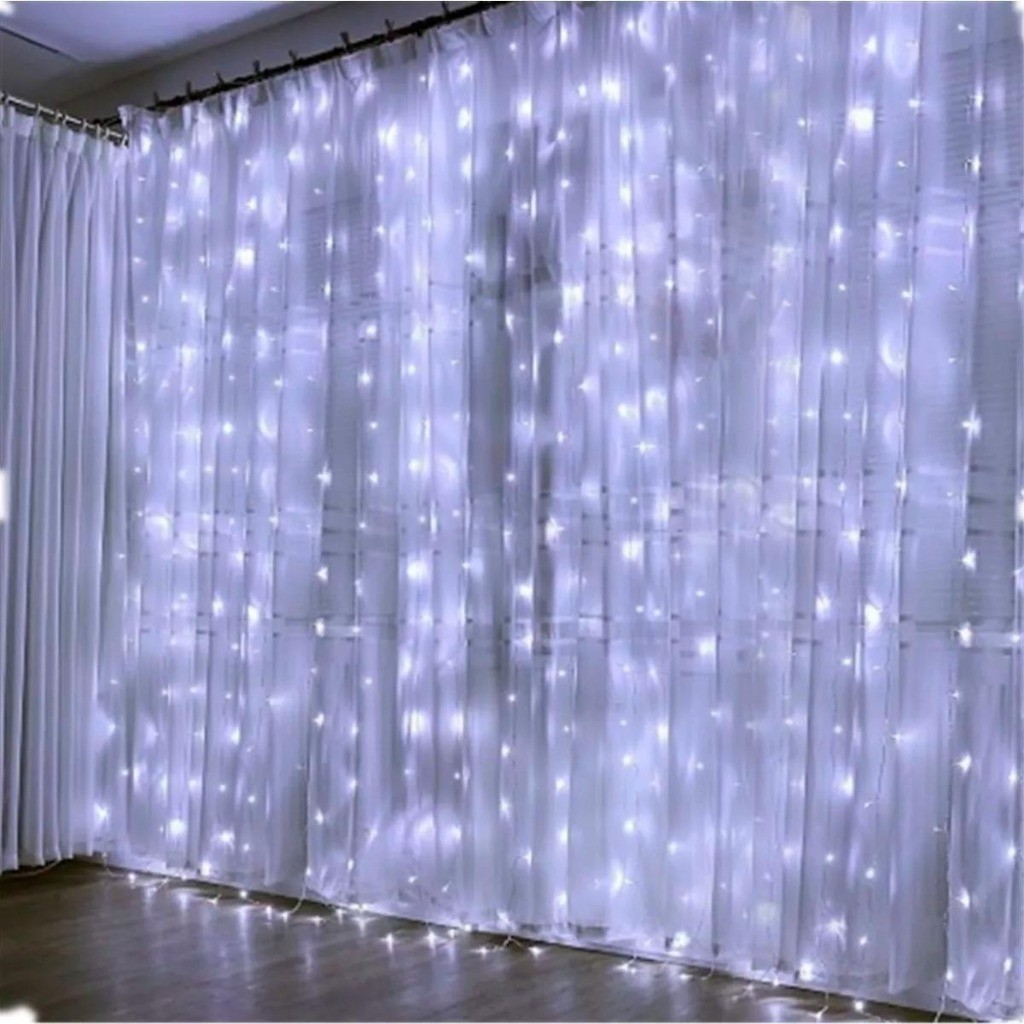 Cortina De Led 3x2,5m 500 Leds Transparente Conectores de Emenda Bivolt Uso Externo