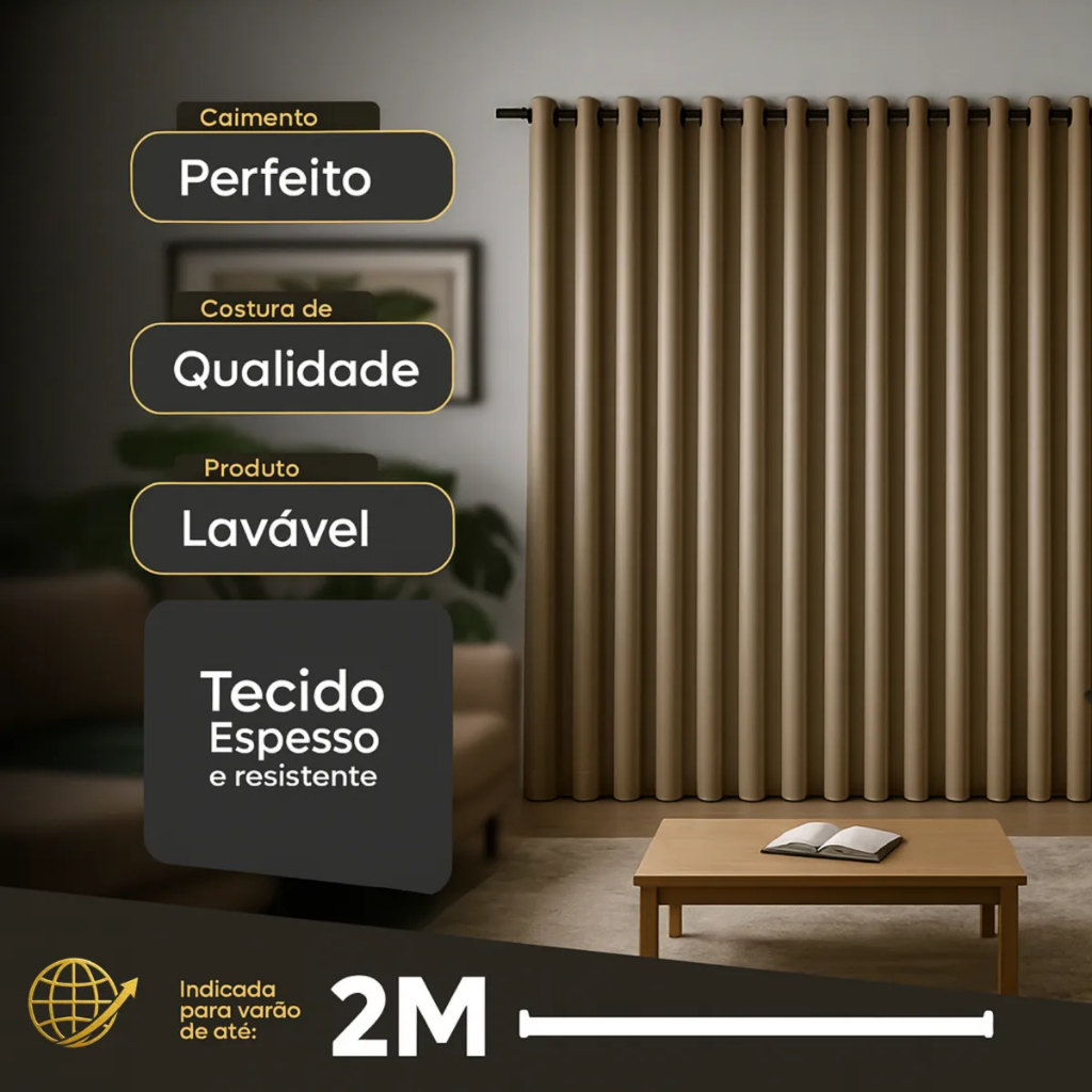 Cortina Tecido Oxford de Sala Quarto Escritório Premium Liso 3,00 x 2,50 metros