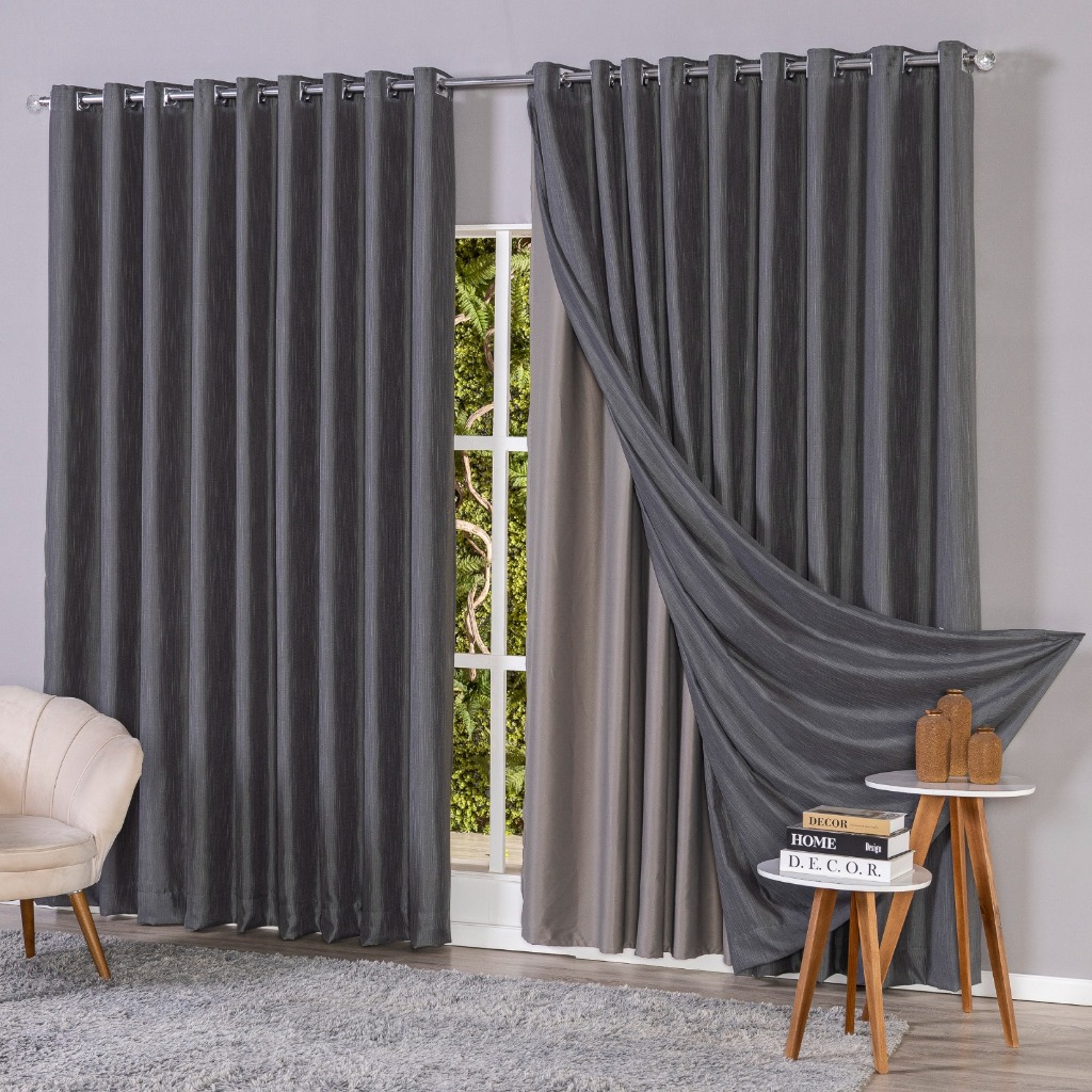 Cortina Voil Gaze De Linho 6,00 x 2,40/2,50/ 2,60/ 2,70/ 2,80 C/forro Blackout Grosso Original para Sala ou Quarto