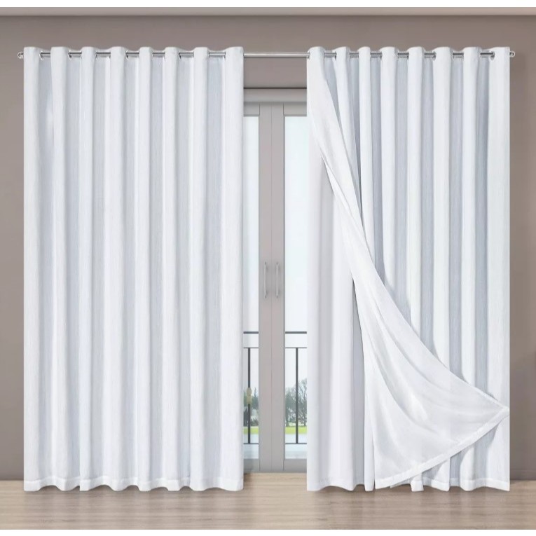 Cortina Voil Gaze de Linho com Forro Microfibra Alto Padrão com Ilhós Cromado Voil Flame