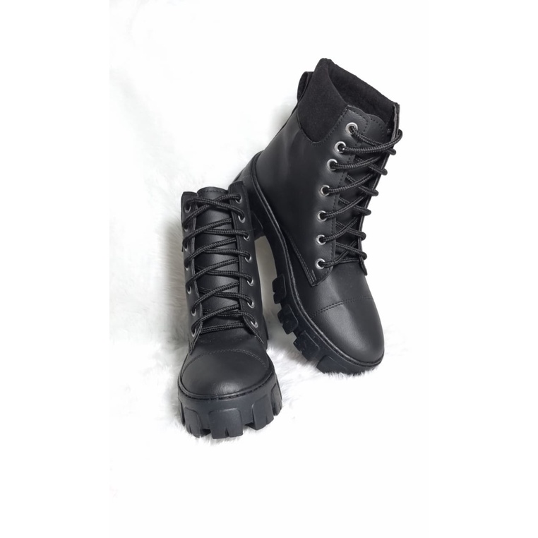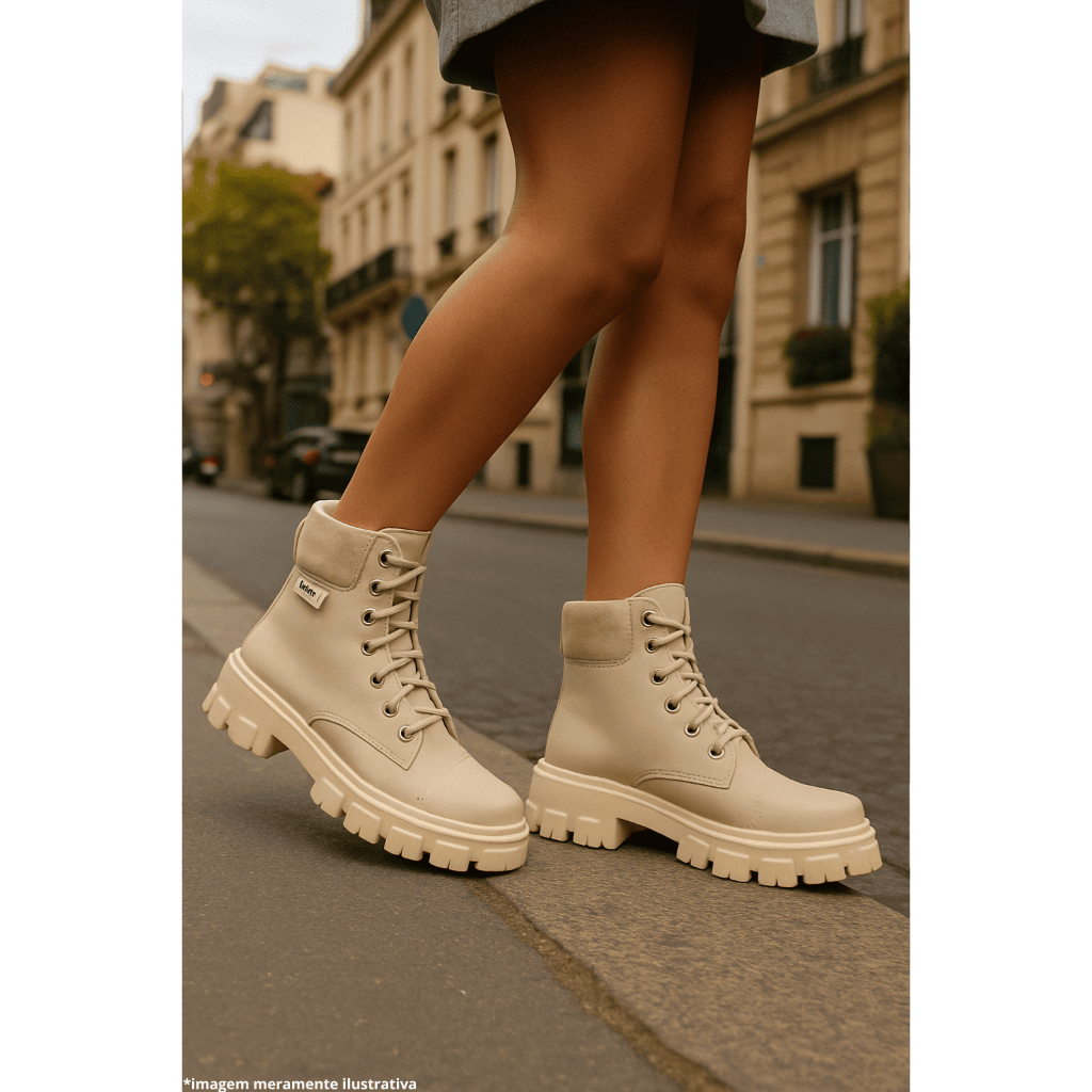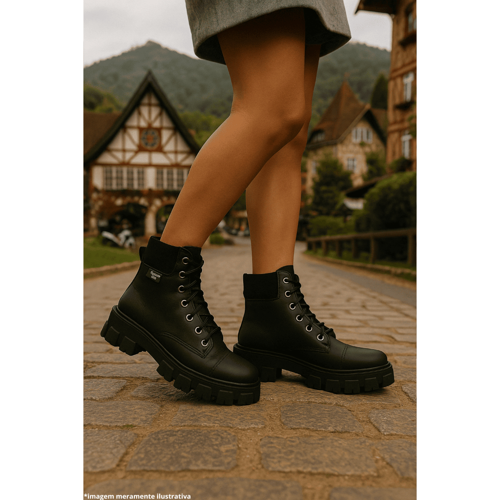 Coturno Feminino Botas Moda Cano Medio Salto Baixo Tratorado Fechamento em Cardaço Conforto e Estilo