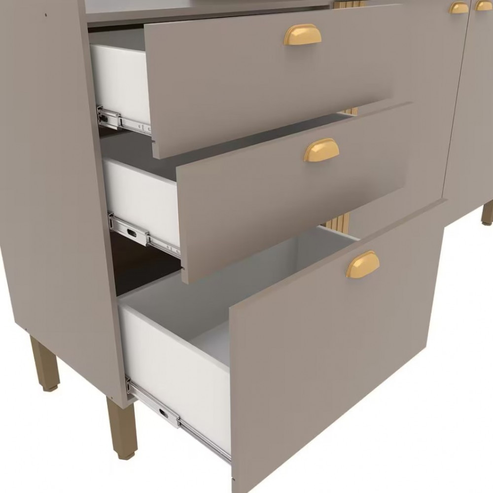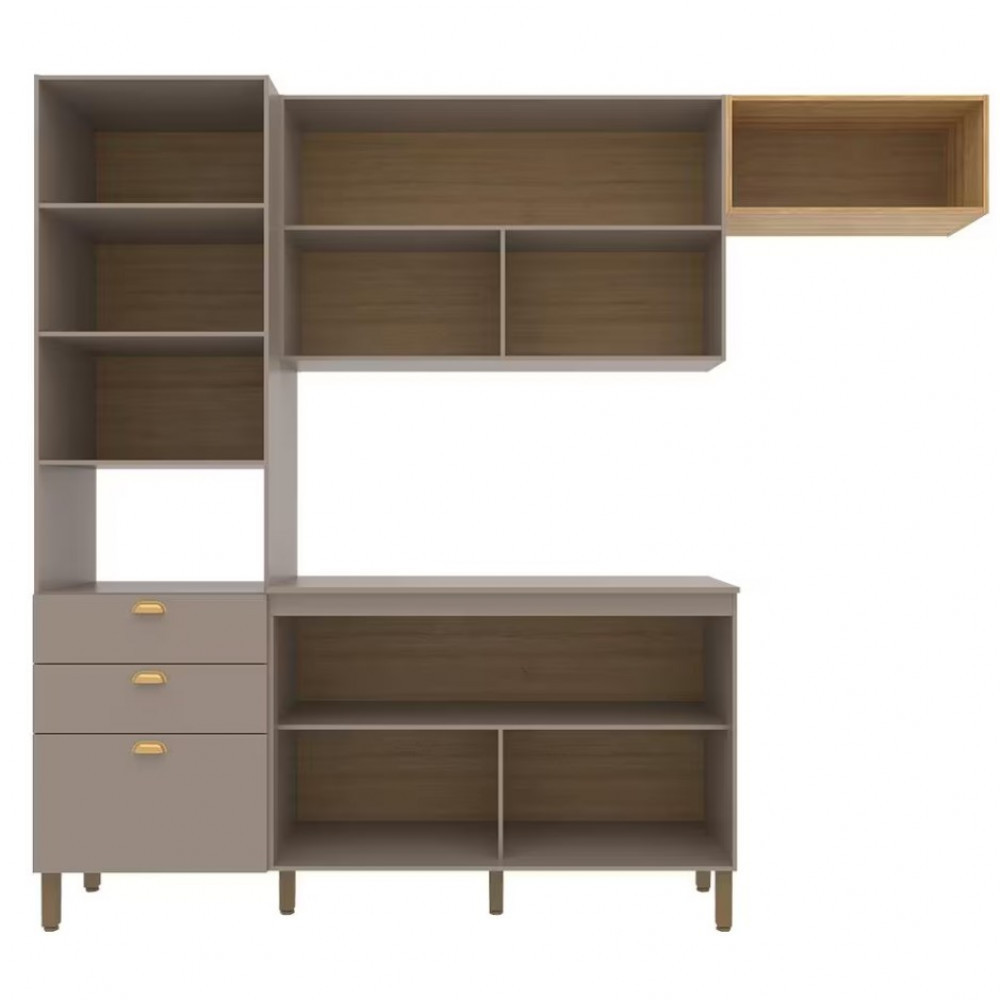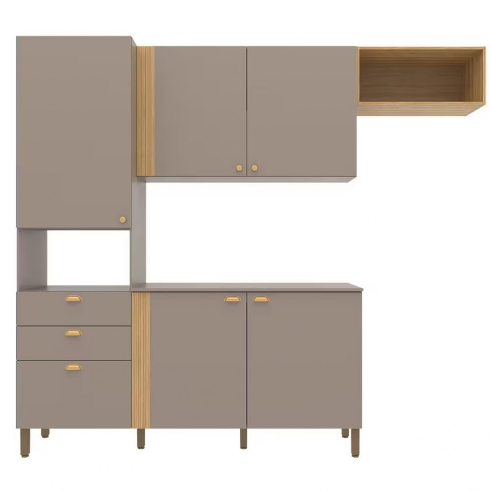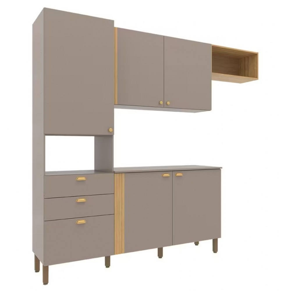 Cozinha Compacta Bartira Pérola com 5 Portas, 2 Gavetas, 1 Gavetão e 4 Prateleiras
