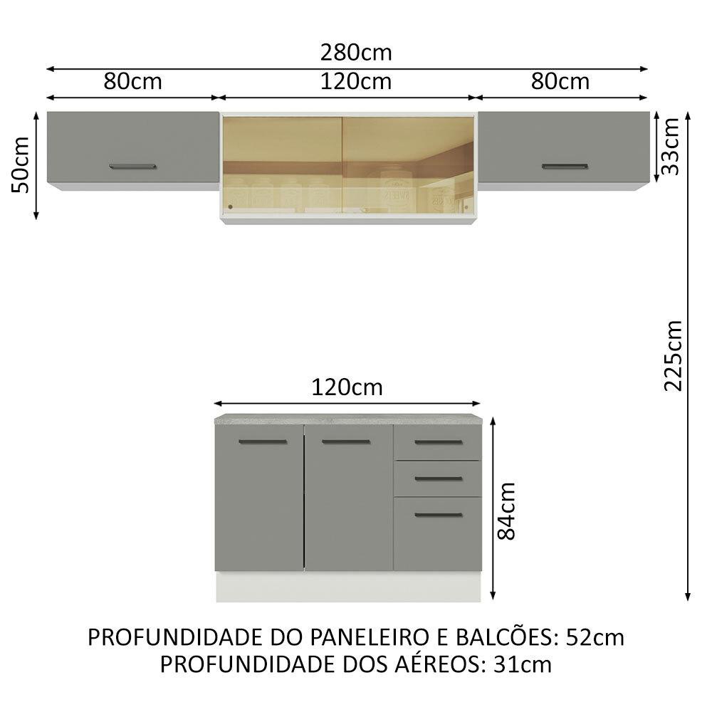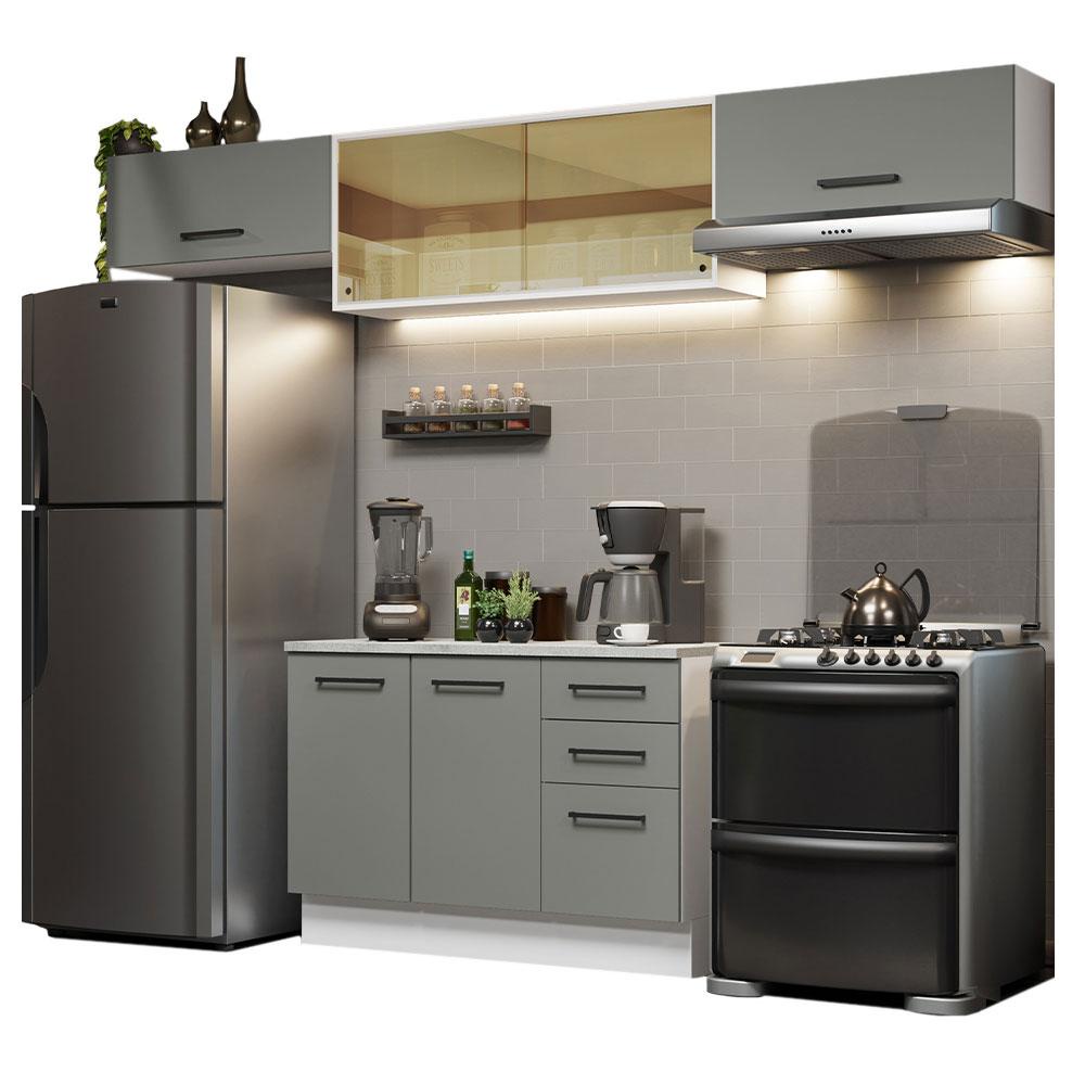 Cozinha Compacta Madesa Agata 280004 com Armário e Balcão (Com Tampo) - Branco/Cinza