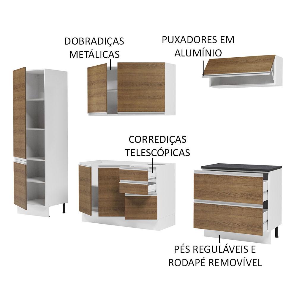Cozinha Completa 100% MDF Madesa Acordes 260001 com Armário e Balcão - Branco/Rustic