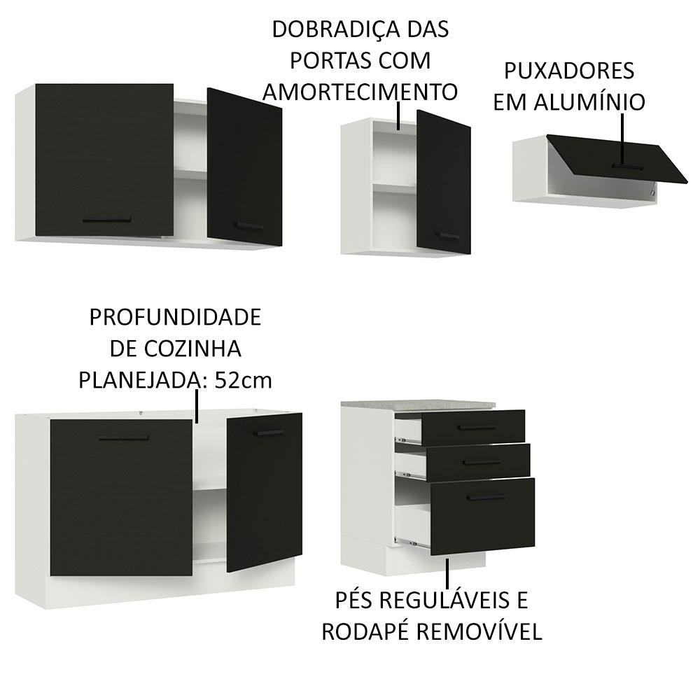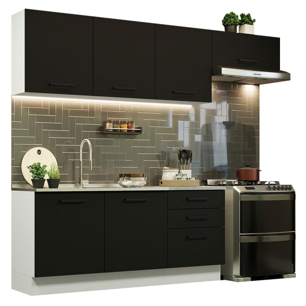 Cozinha Completa Madesa Agata 260002 com Armário e Balcão (Sem Tampo e Pia) - Branco/Preto
