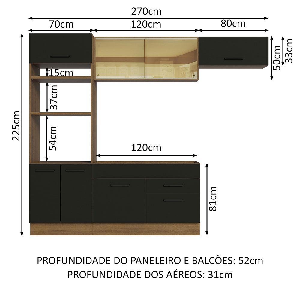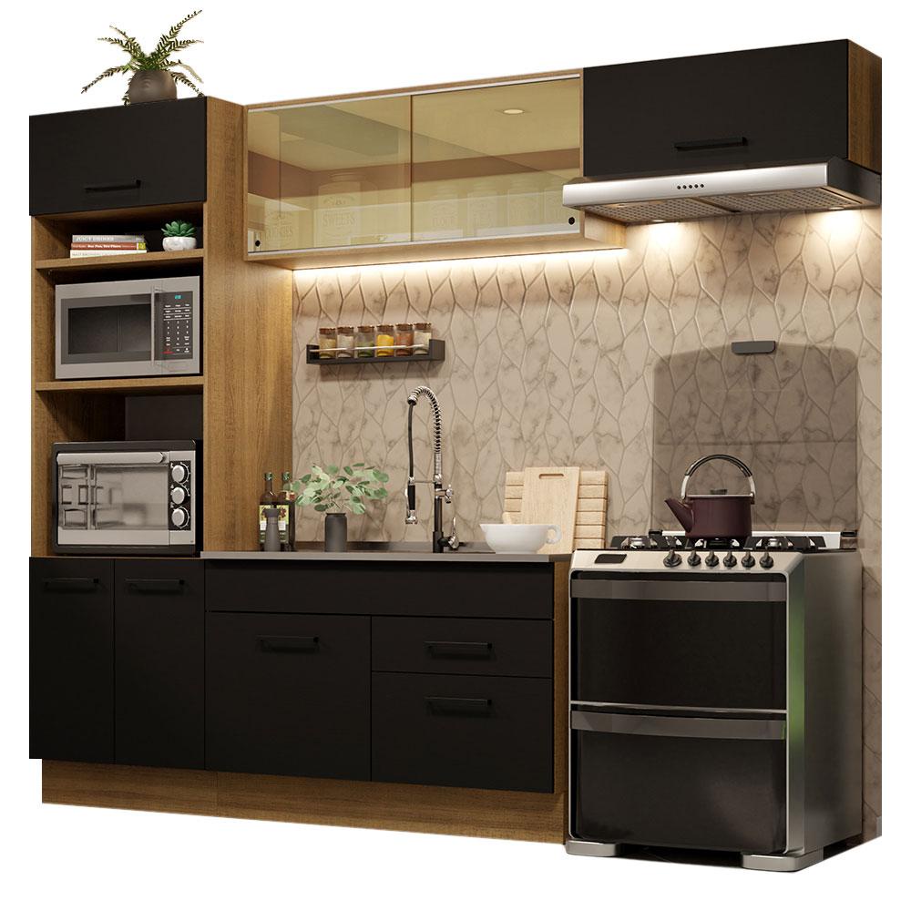 Cozinha Completa Madesa Agata 270004 com Armário e Balcão (Sem Tampo e Pia) - Rustic/Preto