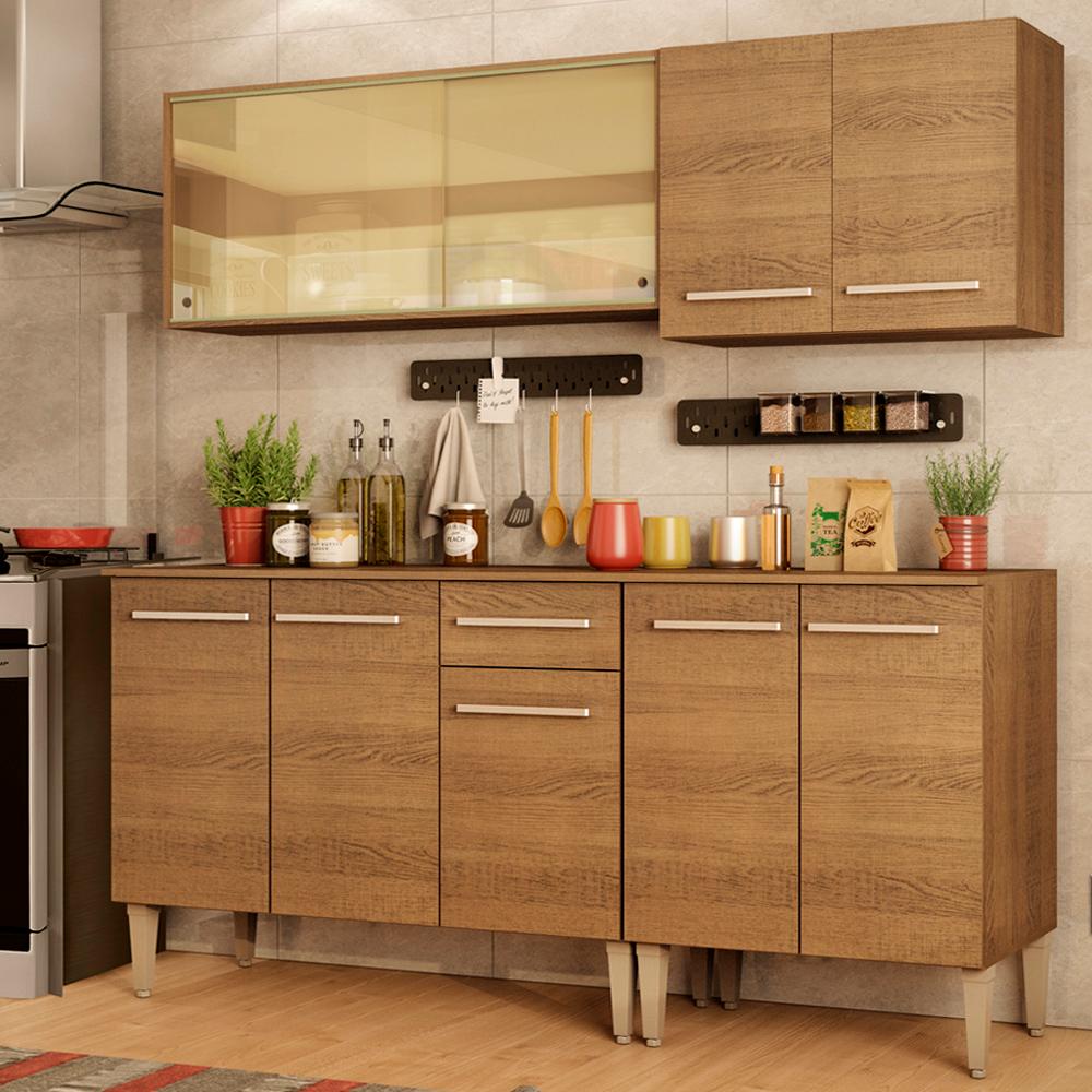 Cozinha Completa Madesa Emilly Drive com Balcão e Armário Aéreo Reflex - Rustic
