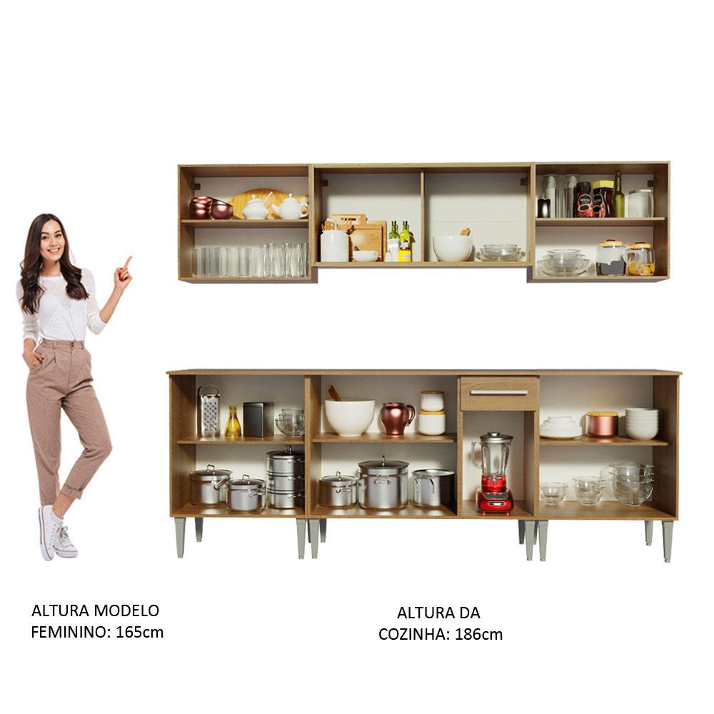 Cozinha Completa Madesa Emilly Fire com Balcão e Armário Aéreo Reflex