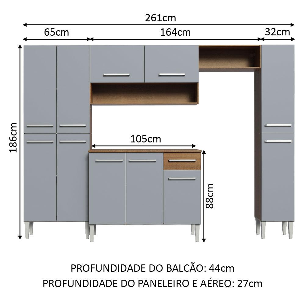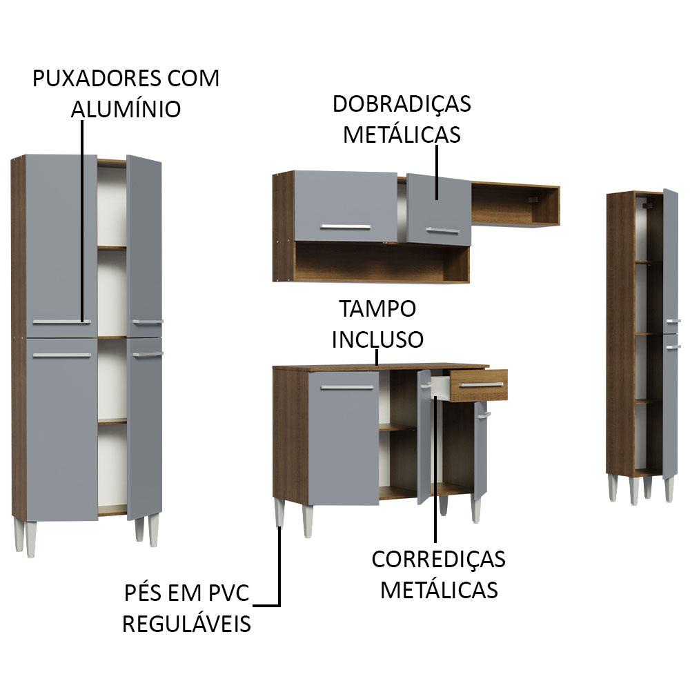 Cozinha Completa Madesa Emilly Hit com Armário, Balcão e Paneleiro - Rustic/Cinza