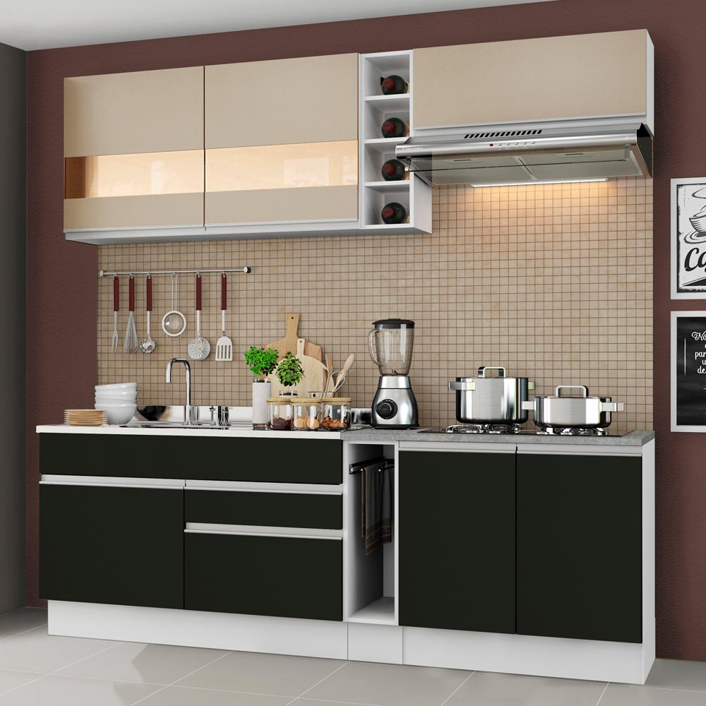 Cozinha Completa Madesa Parma com Armário e Balcão (Sem Tampo e Pia) - Branco/Preto/Crema