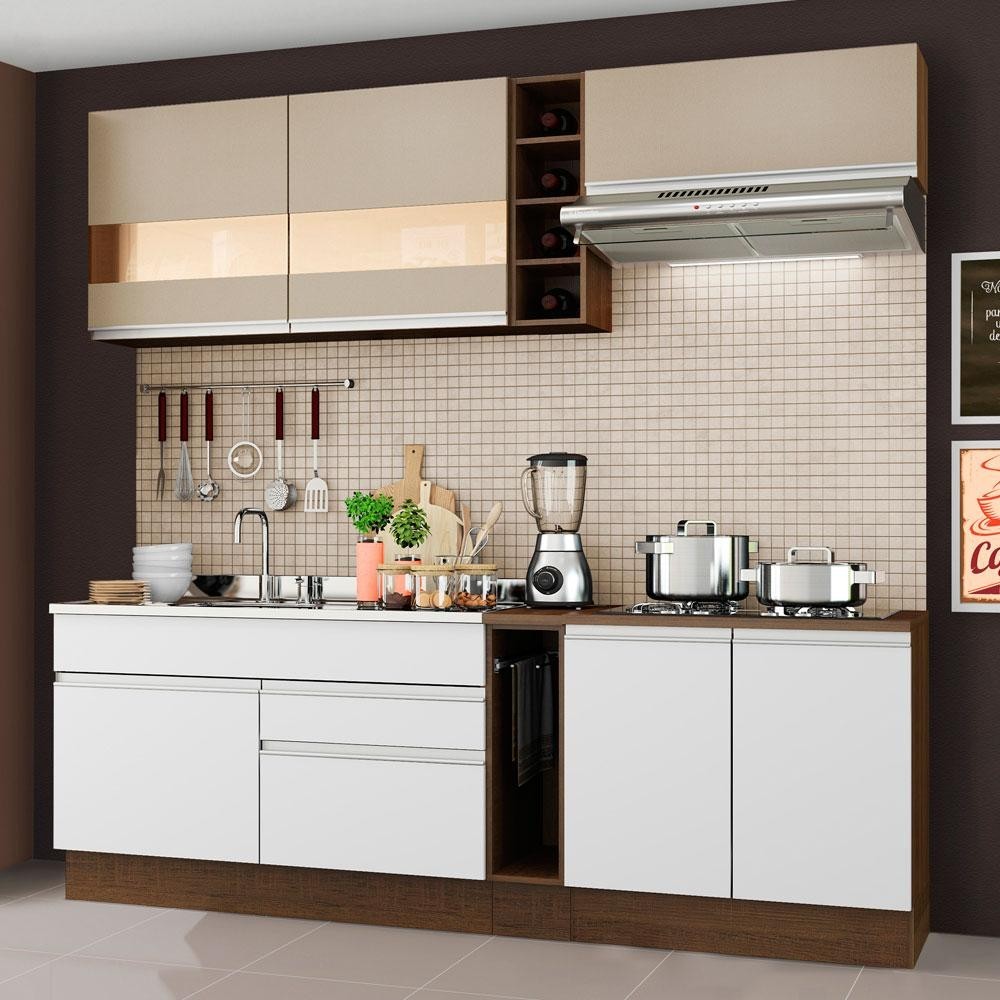 Cozinha Completa Madesa Parma com Armário e Balcão (Sem Tampo e Pia) - Rustic/Branco/Crema