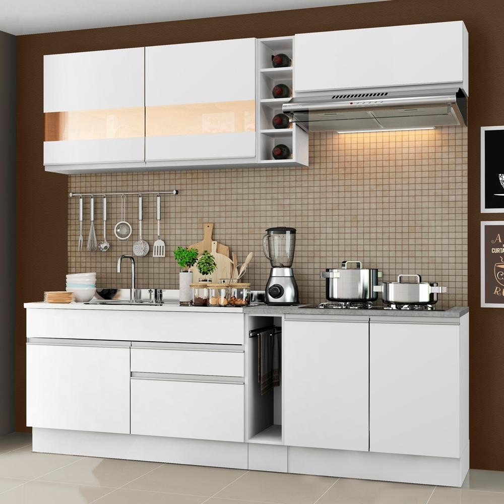 Cozinha Completa Madesa Parma com Armário e Balcão (Sem tampo e Pia) - Branco
