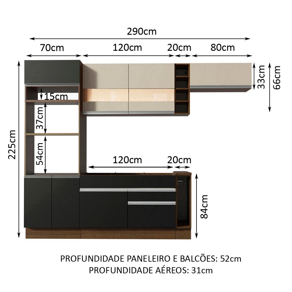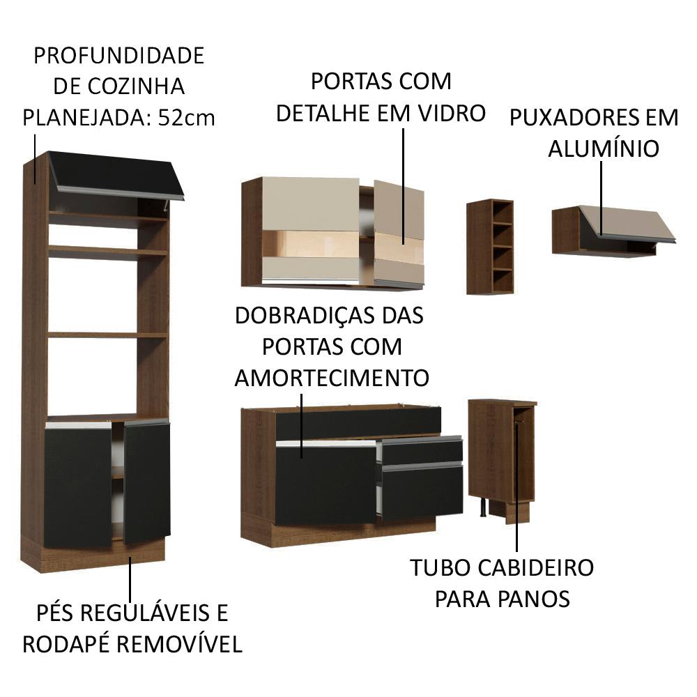 Cozinha Completa Madesa Safira com Armário e Balcão (Sem Tampo e Pia) - Rustic/Preto/Crema
