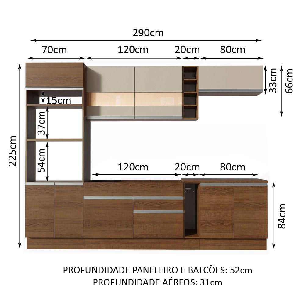Cozinha Completa Madesa Vicenza com Armário e Balcão + Tampo - Rustic/Rustic/Crema