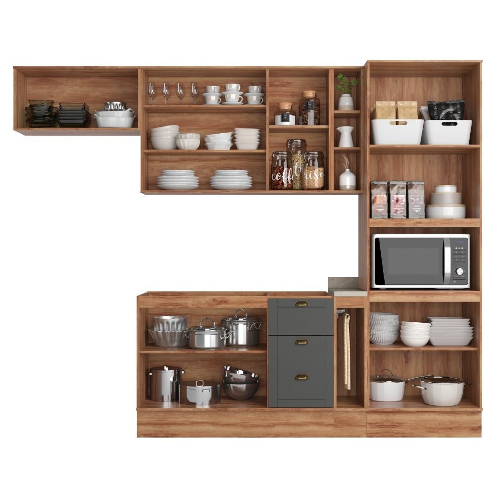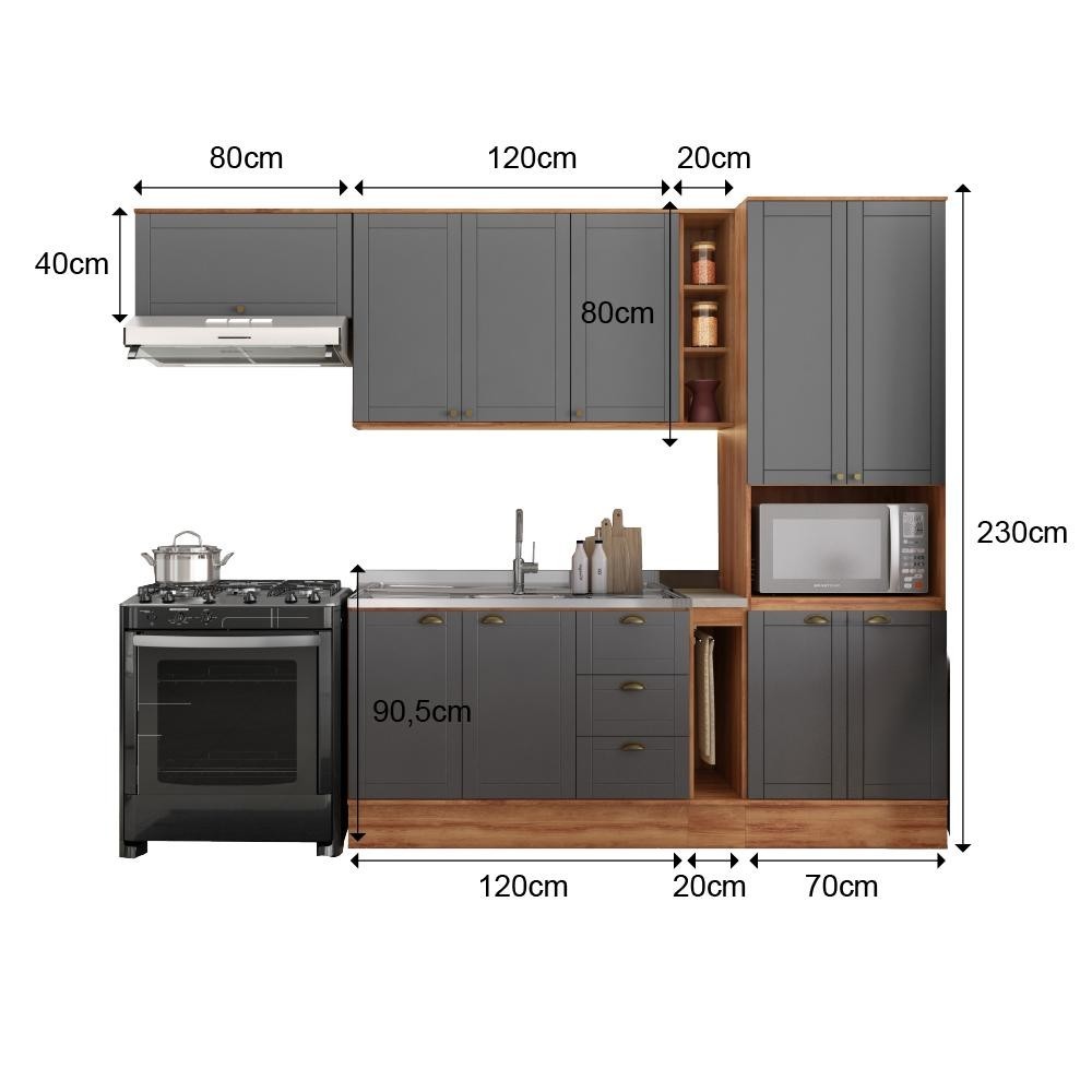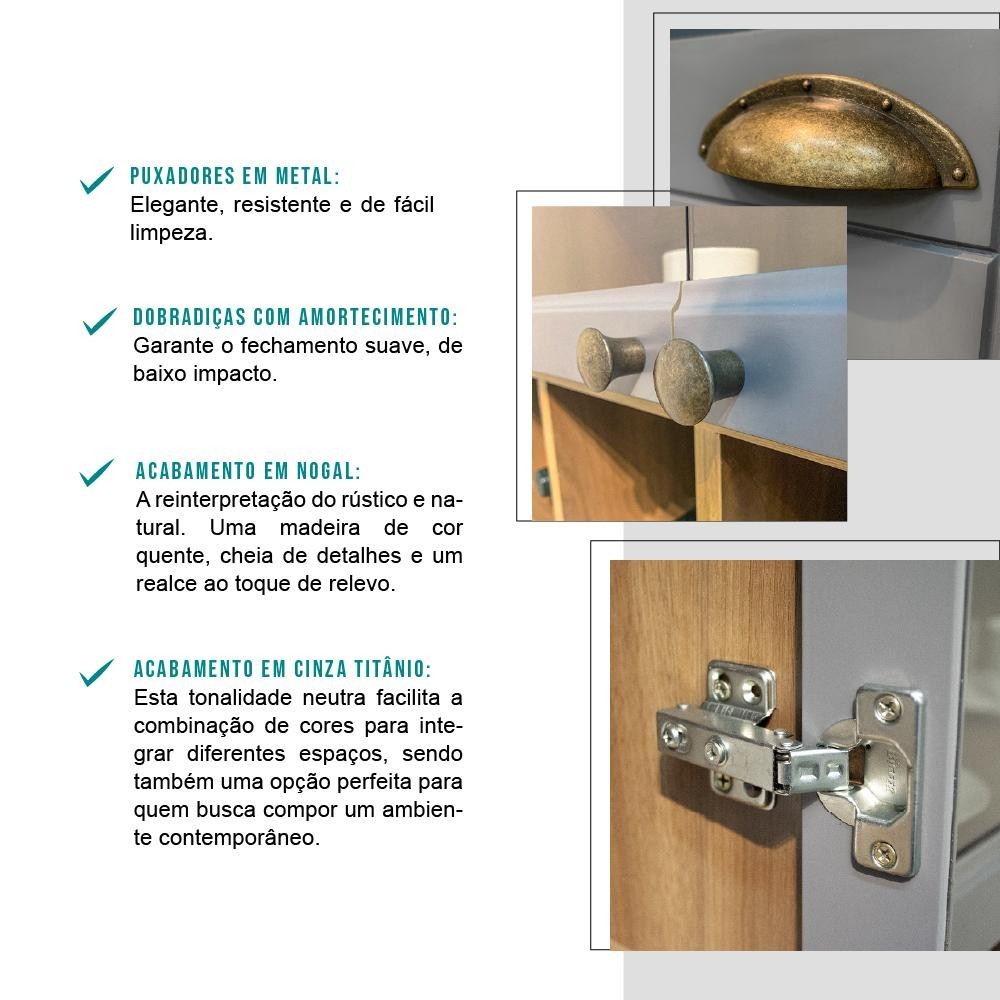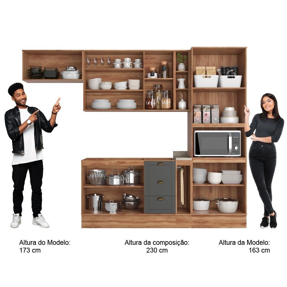 Cozinha Completa Milla Flex Armário e Balcão Nog/Cinza Carraro