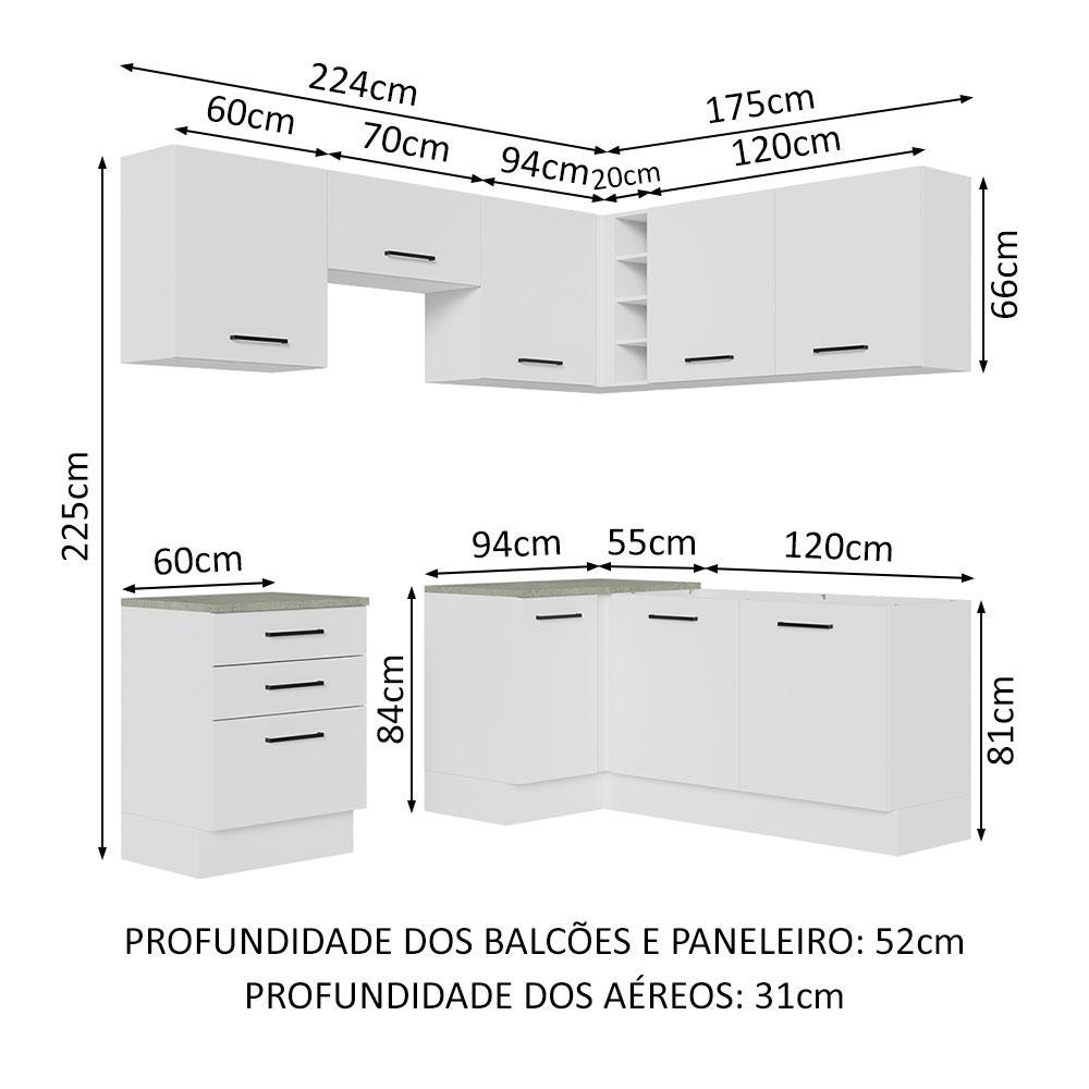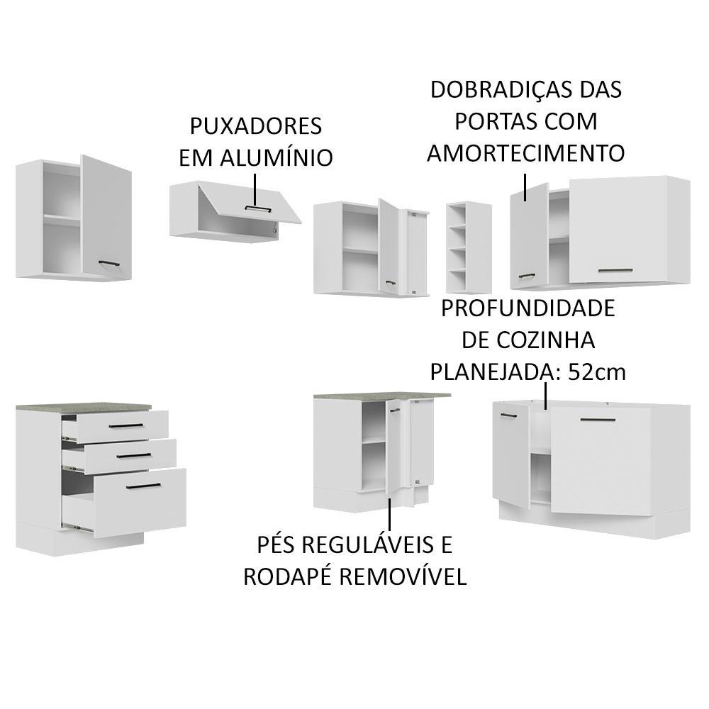 Cozinha Completa de Canto Madesa Agata 399002 com Armário e Balcão (Sem Tampo e Pia) - Branco
