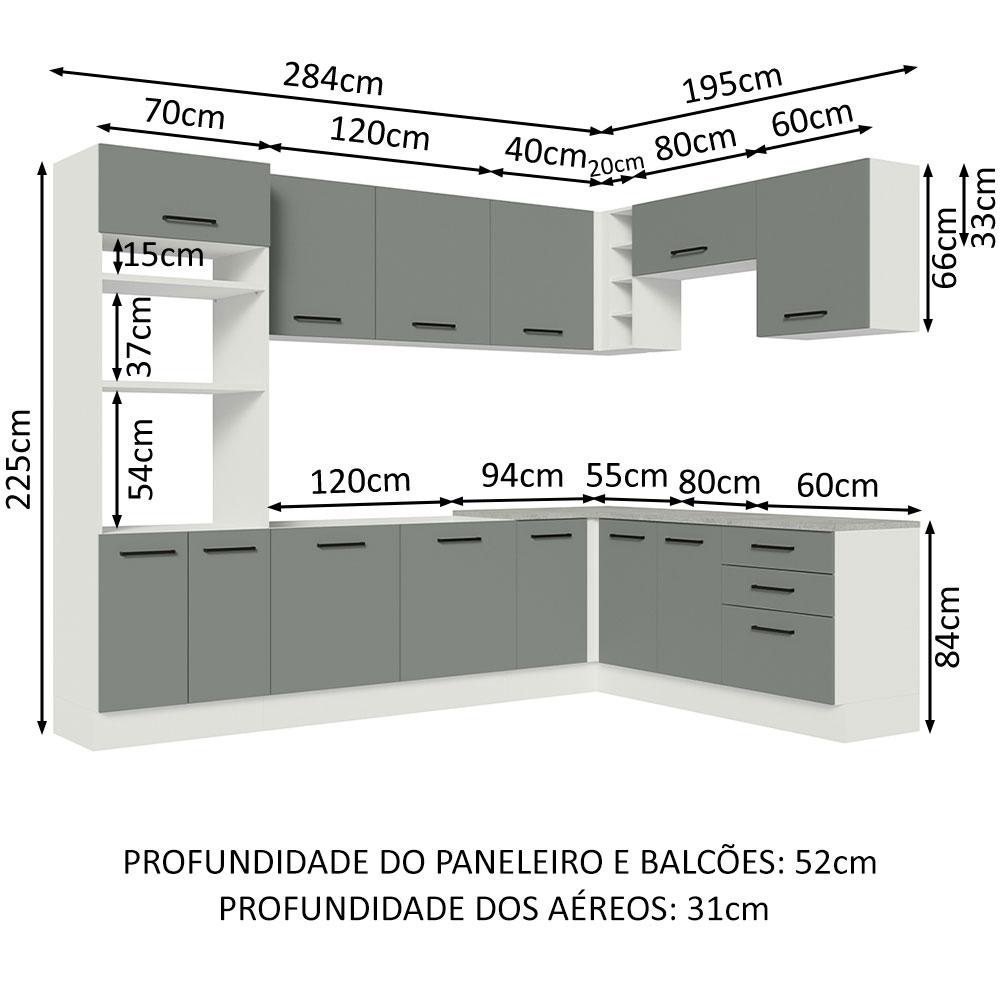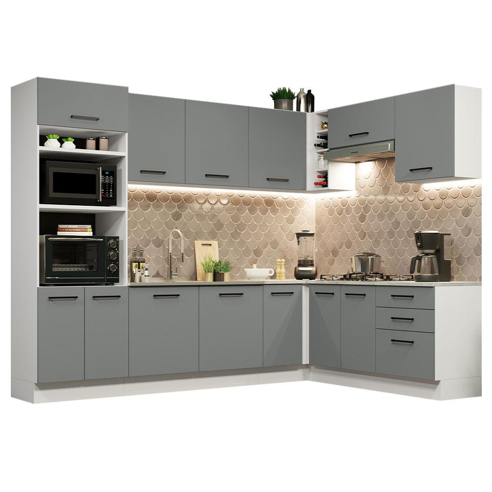 Cozinha Completa de Canto Madesa Agata 479001 com Armário e Balcão (Sem Tampo e Pia) - Branco/Cinza