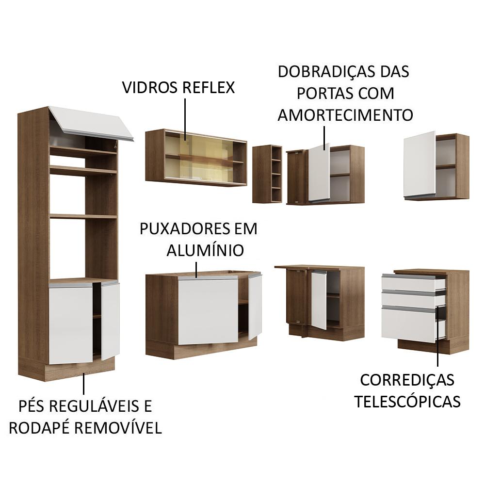 Cozinha Completa de Canto Madesa Glamy 399002 com Armário e Balcão (Sem Tampo e Pia) - Rustic/Branco