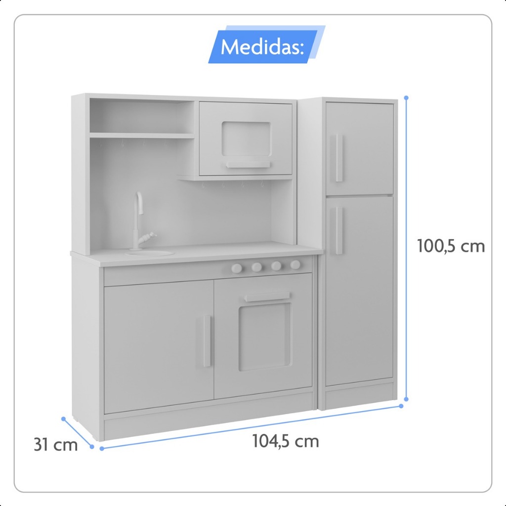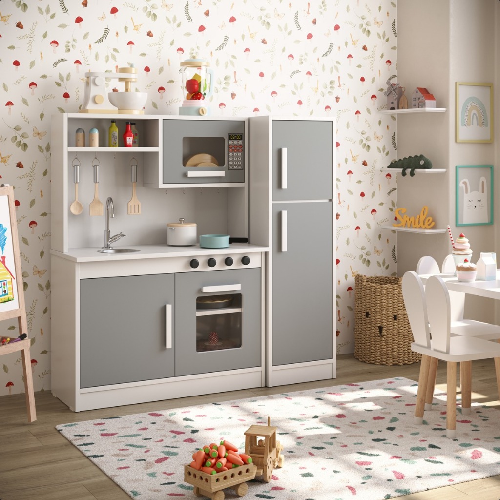 Cozinha Infantil Completa com Refrigerador Pia Fogão e Microondas MDF/MDP Criança