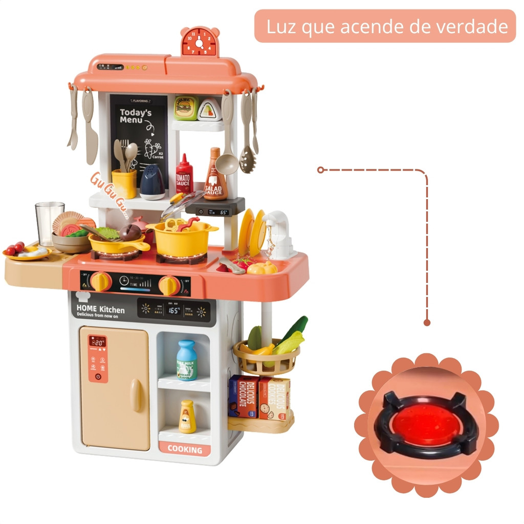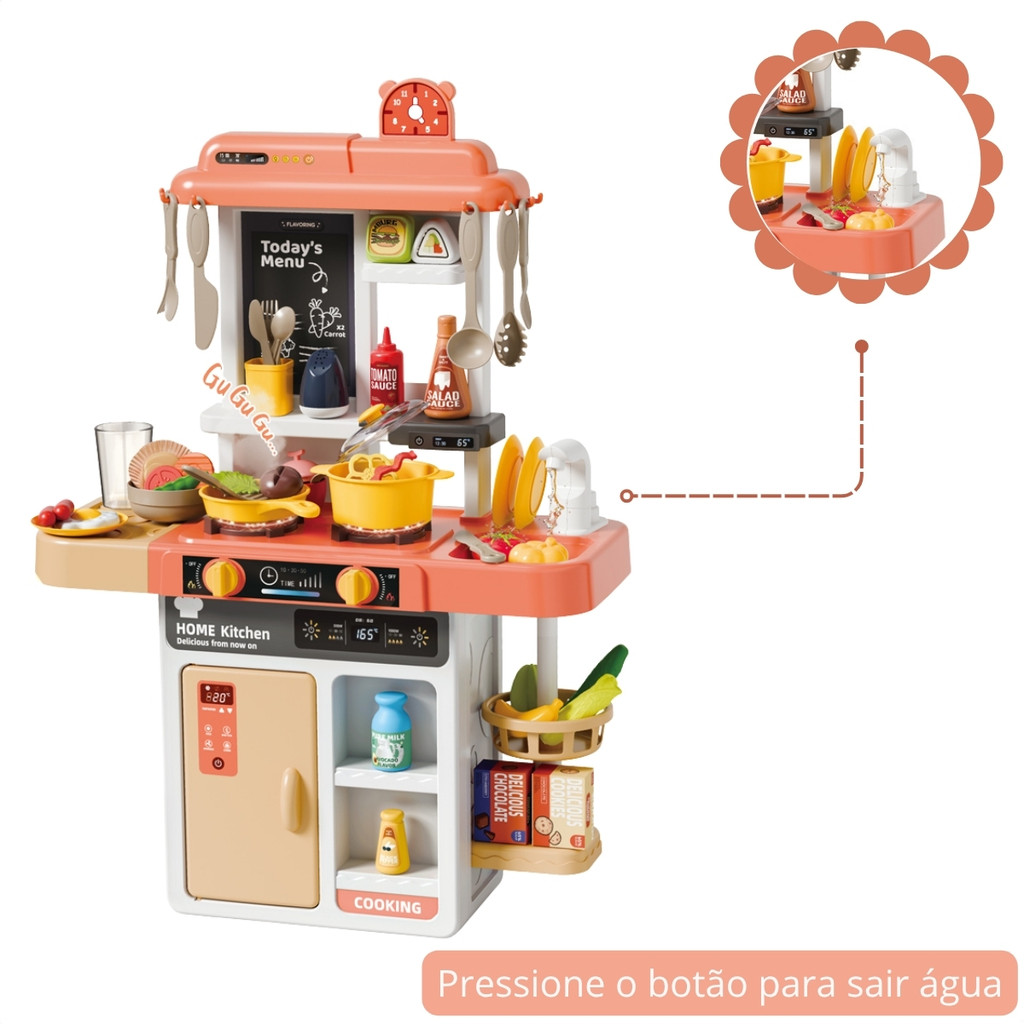Cozinha Infantil com Geladeira 52 Acessórios Água Vapor Luz e Som