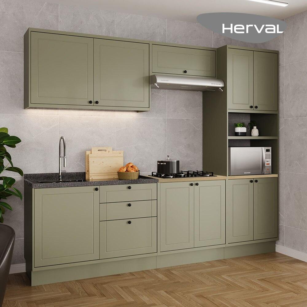 Cozinha Modulada Completa Herval Viana, 5 Peças, Verde Hill e Carvalho Nature