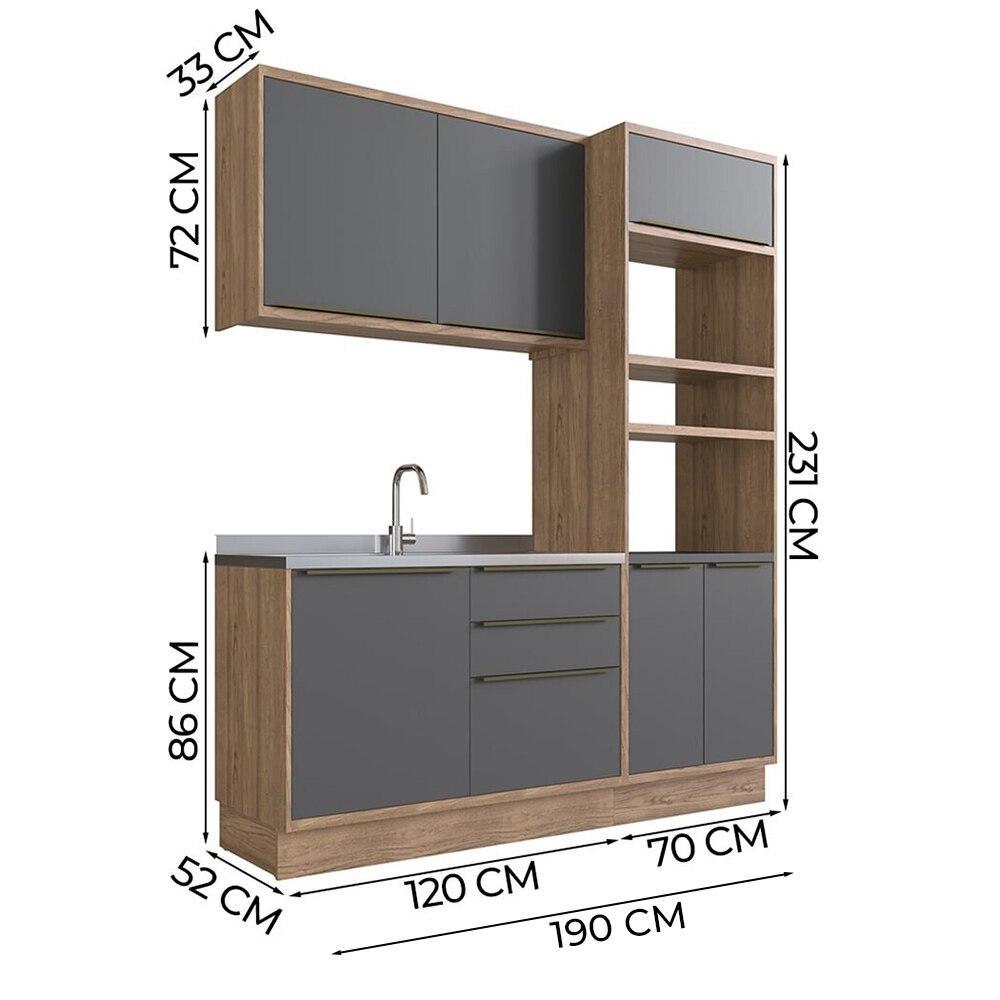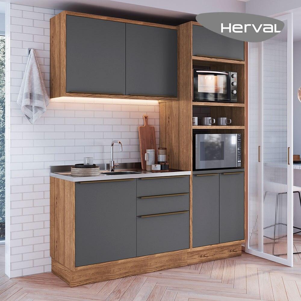 Cozinha Modulada Pequena Herval Ten, 3 Peças 100% MDF, 190 cm
