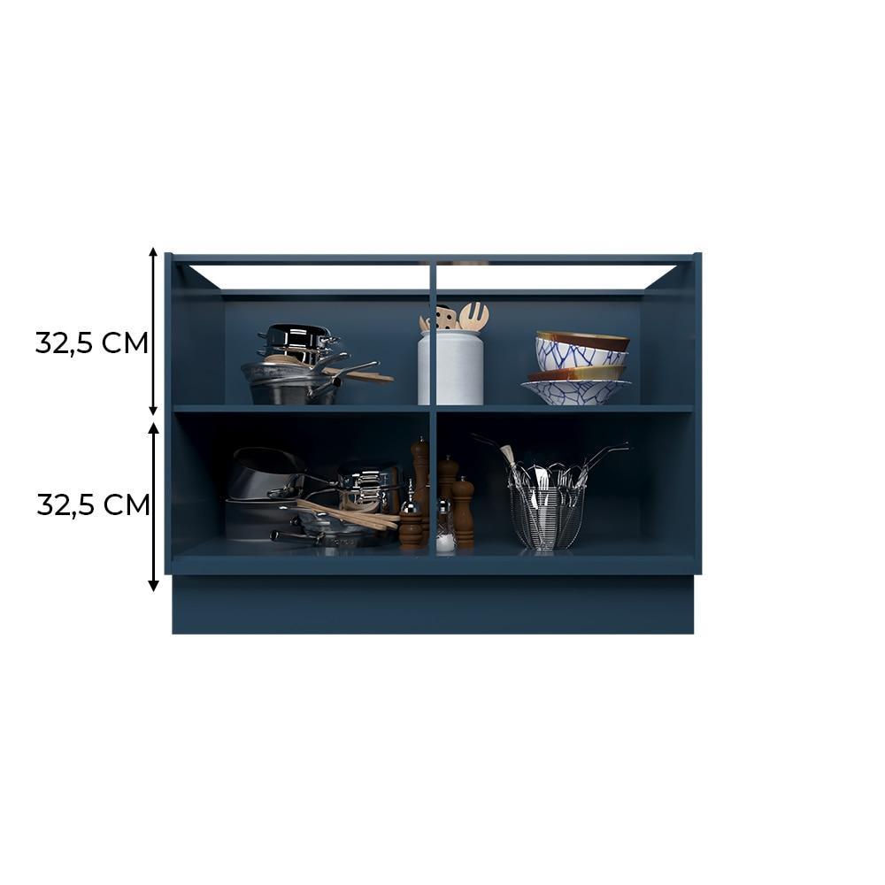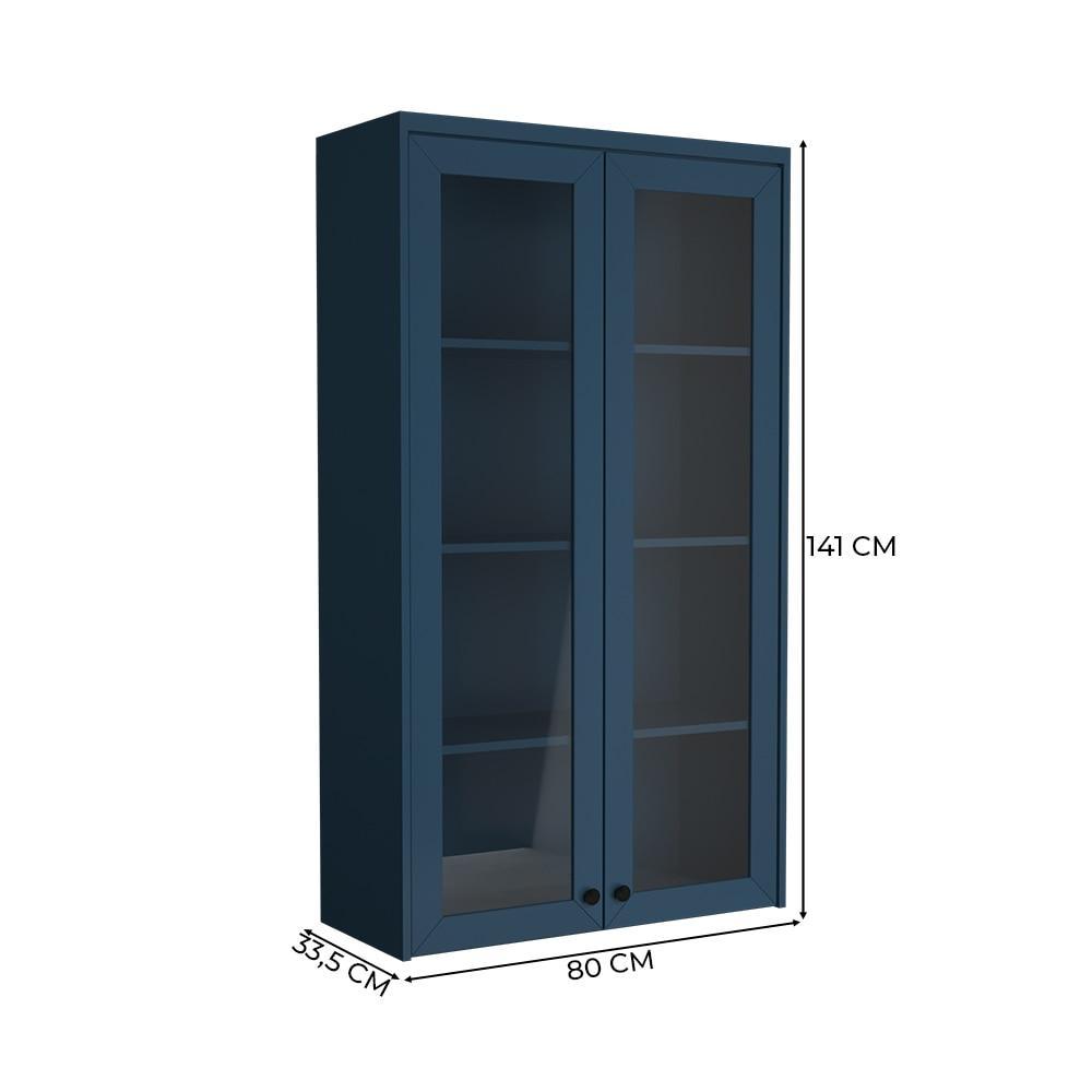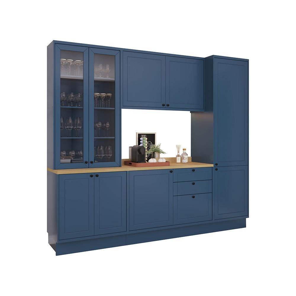 Cozinha Modulada Pequena Herval Viana, 7 Peças, Azul Orion E Carvalho Nature, Com Vidro