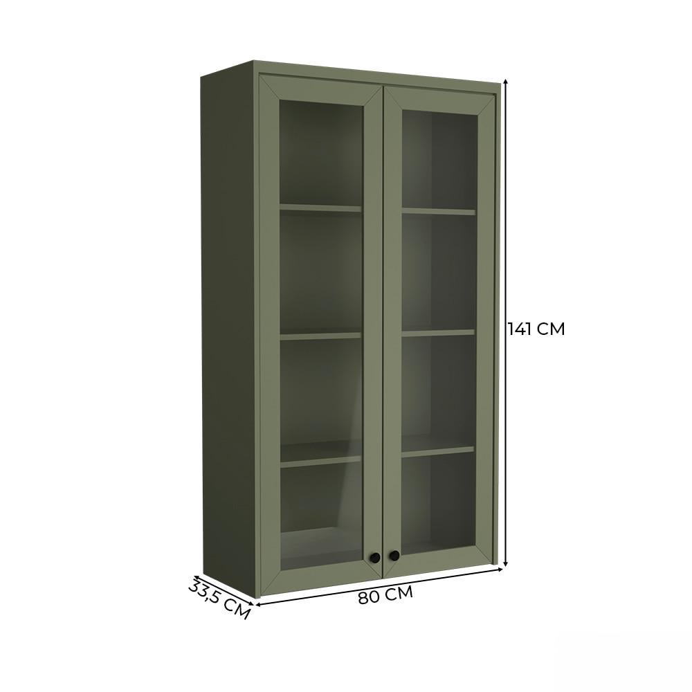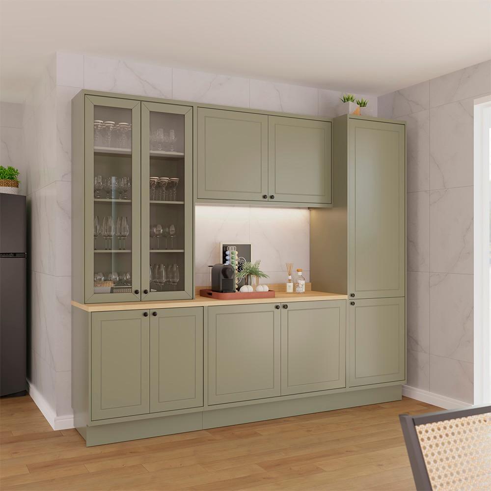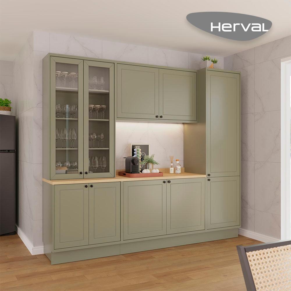 Cozinha Modulada Pequena Herval Viana, 7 Peças, Verde Hill e Carvalho Nature, com Vidro