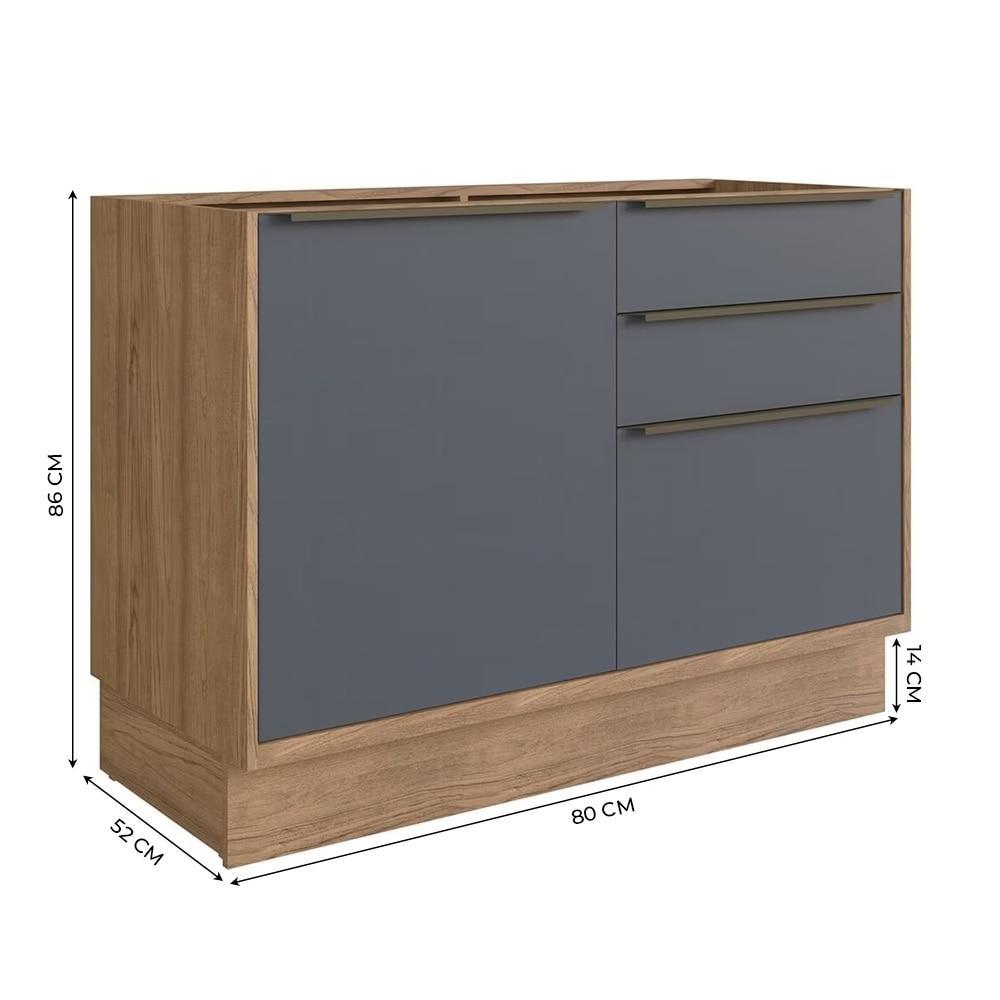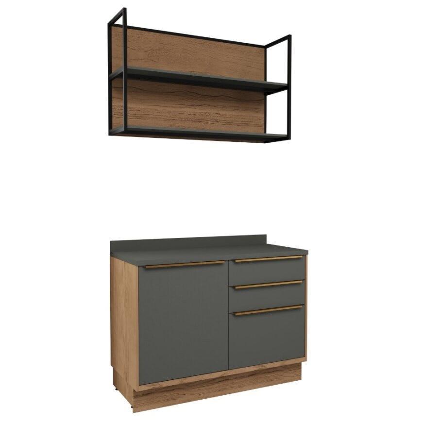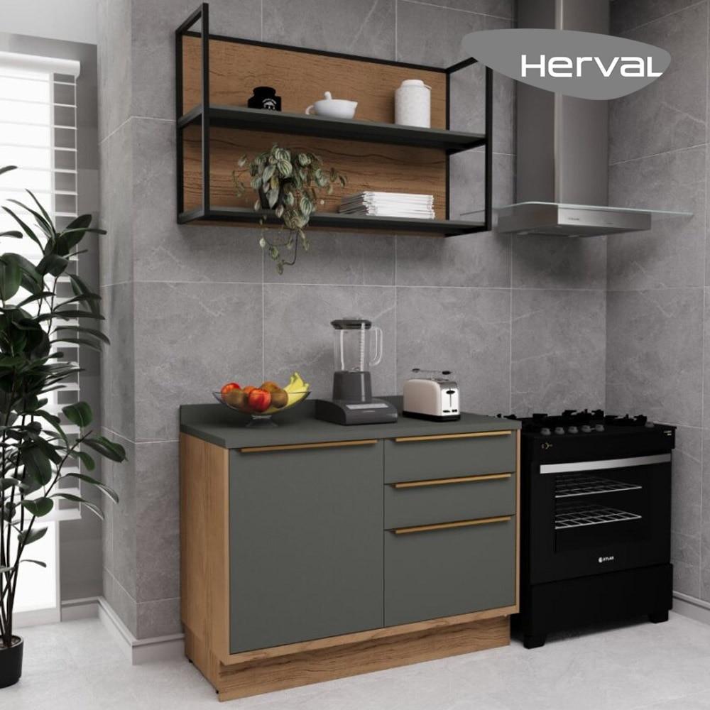Cozinha Modulada Pequena com Tampo Herval Ten, 3 peças, 100% MDF, 120 cm