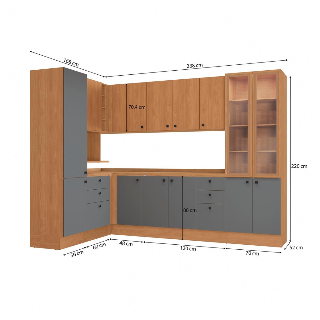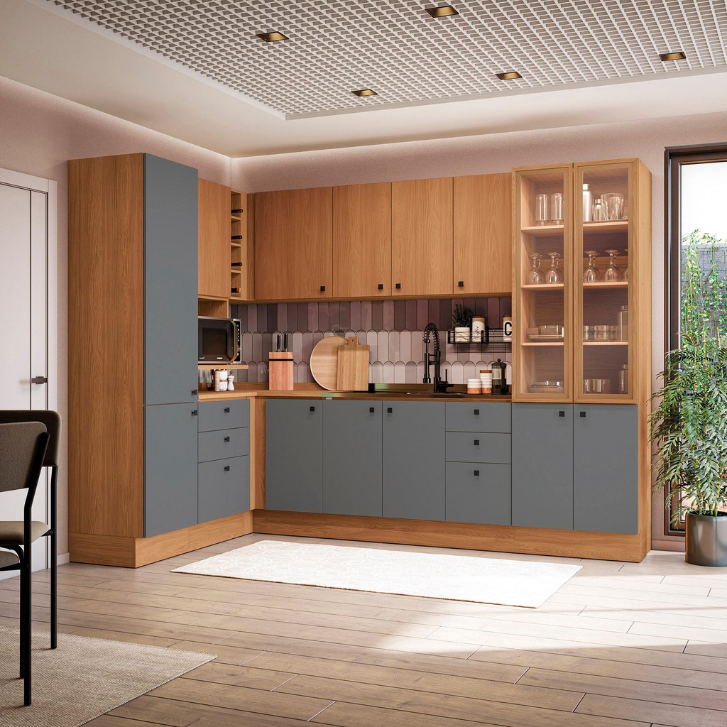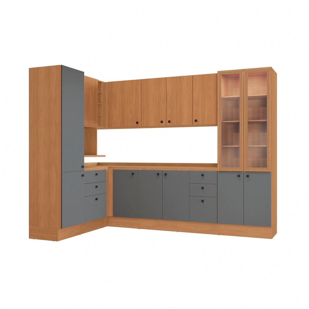 Cozinha Modulada Pixel Kappesberg 100% MDP Canela/Cinza Sagrado/Canela 456cm