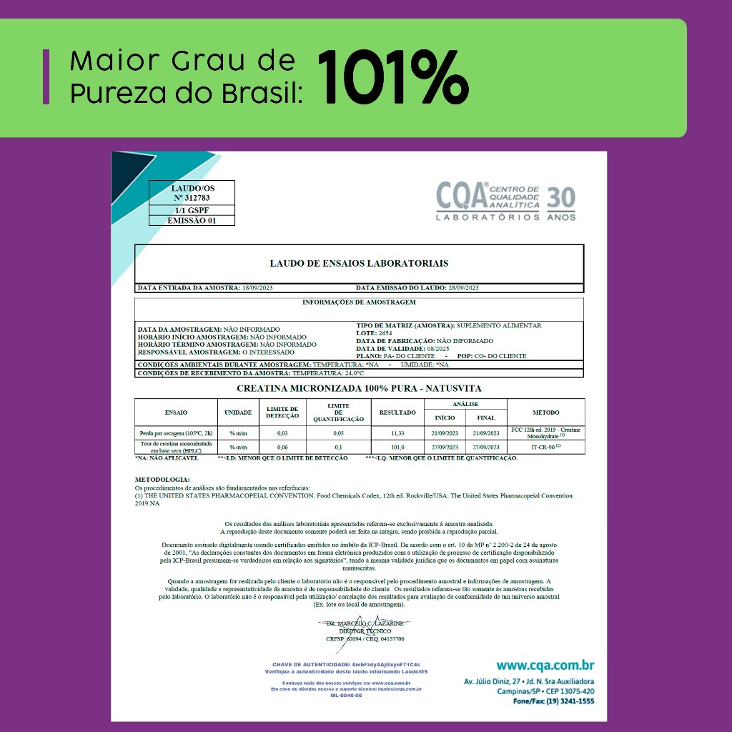 Creatina 101% de Pureza Monohidratada Micronizada à 180 mícrons