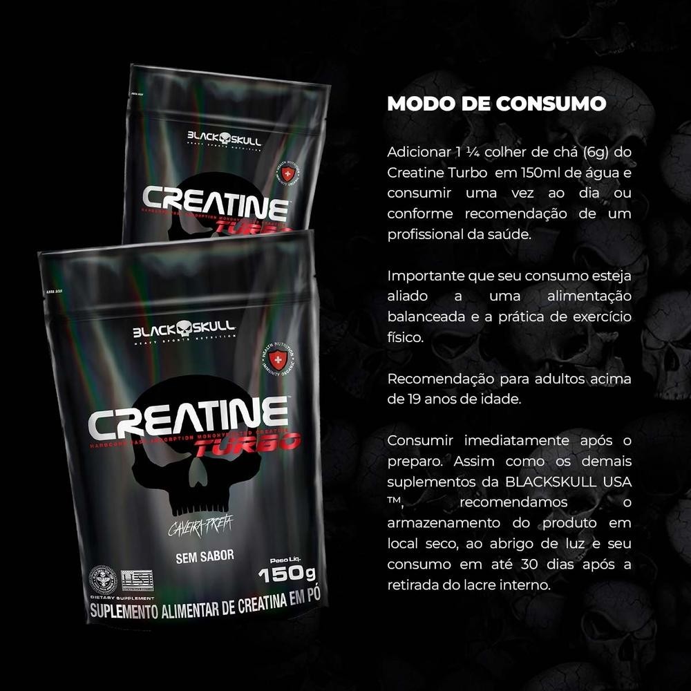 Creatina Turbo Black Skull Stand Up Pouch Sem Sabor 150g