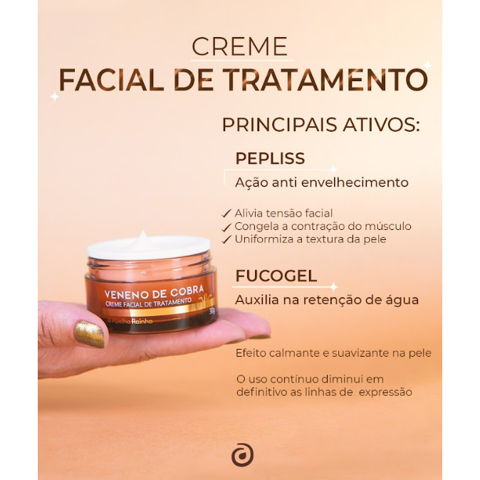 Creme Facial Veneno de Cobra Efeito Lifting e Botox Natural Prevenção Tratamento de Rugas