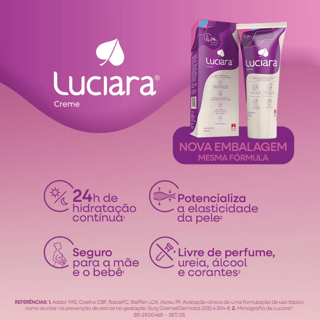 Creme Preventivo Hidratante Luciara 200ml | Prevenção Estrias na Gravidez, Hidratação e Elasticidade