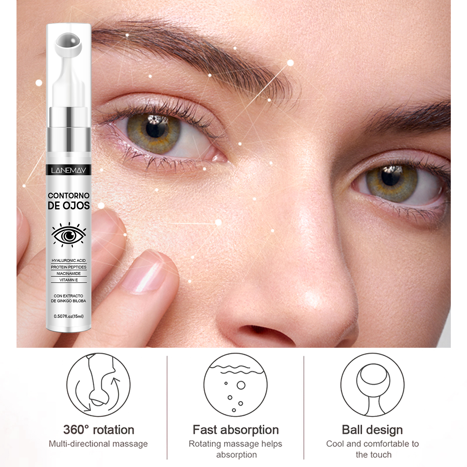 Creme para os Olhos com Extrato de Arroz, Ácido Hialurônico e Vitamina E, Tratamento Clareador e Anti-idade para