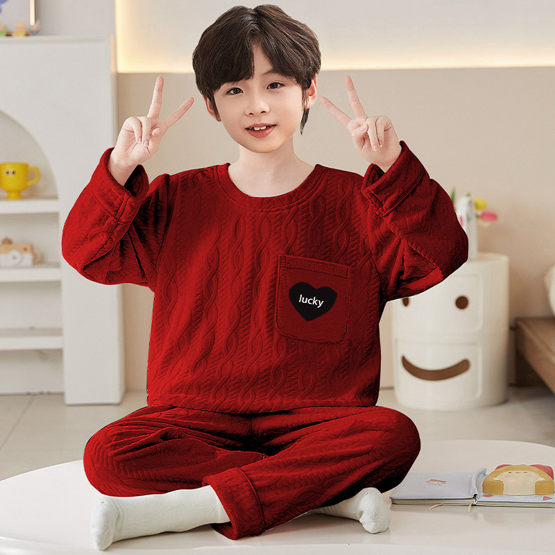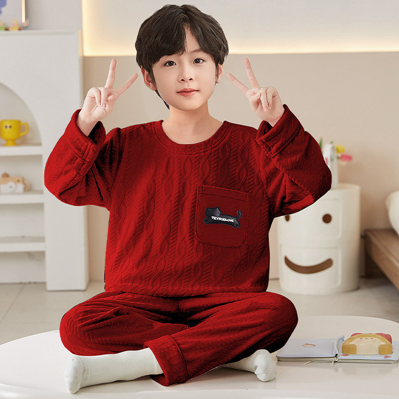 Crianças pijamas infantis meninos vermelho outono inverno 2026 ano do cavalo Benming ano Coral velo mais veludo engrossa