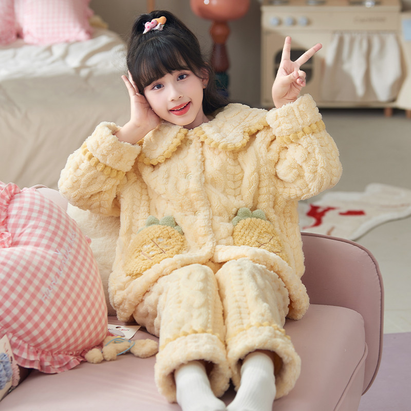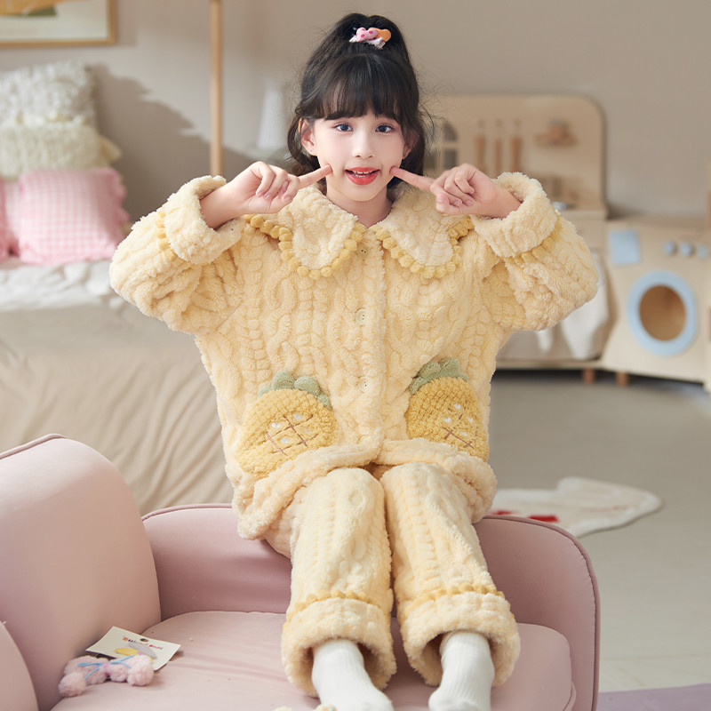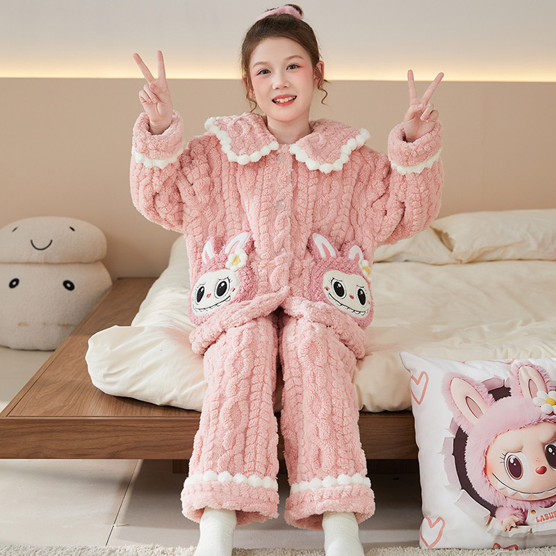 Crianças pijamas meninas outono inverno Coral velo engrossado flanela HelloKitty grandes crianças meninas roupas de casa