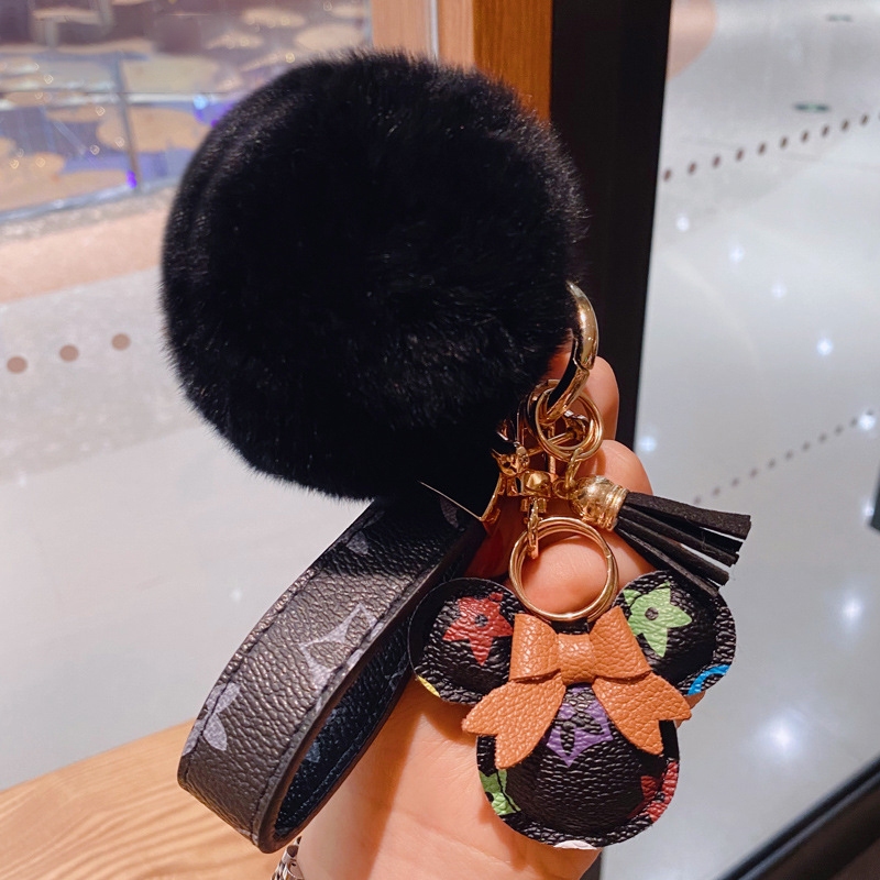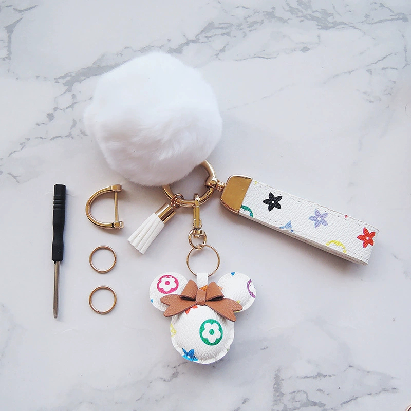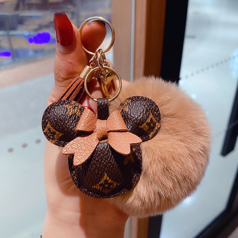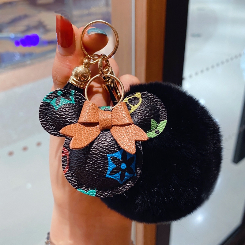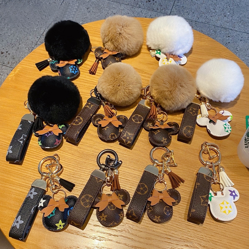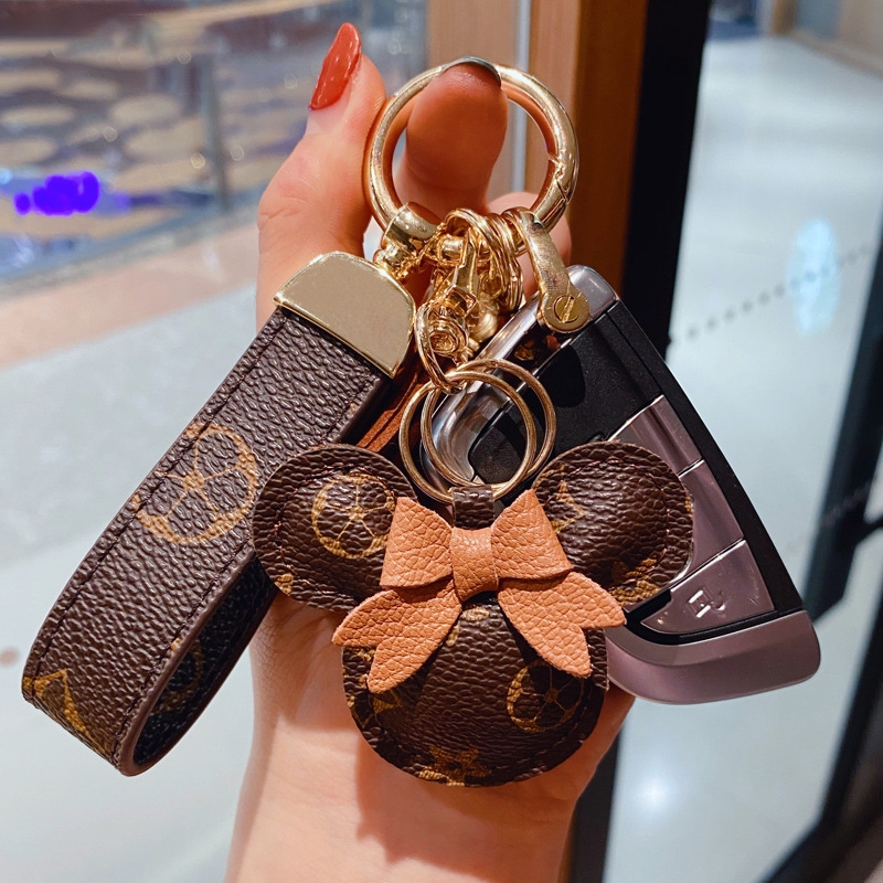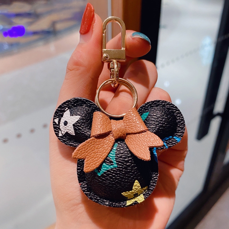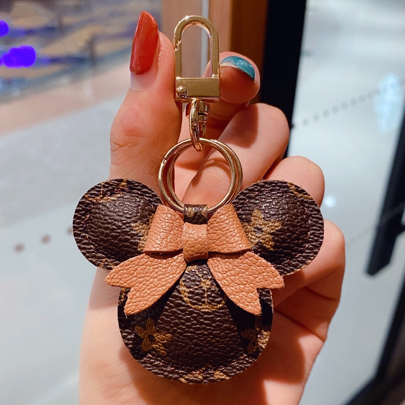 Criativo Dos Desenhos Animados Marca De Luxo Impresso Couro Mickey Minnie Chaveiro Carro Casal Saco Pingente